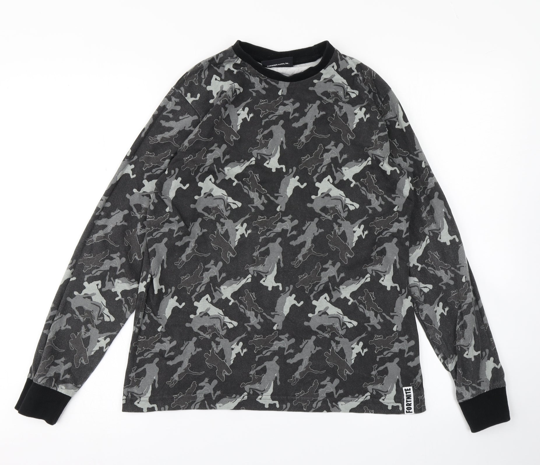 Boys Grey Camouflage Basic T-Shirt Size L - Fortnite