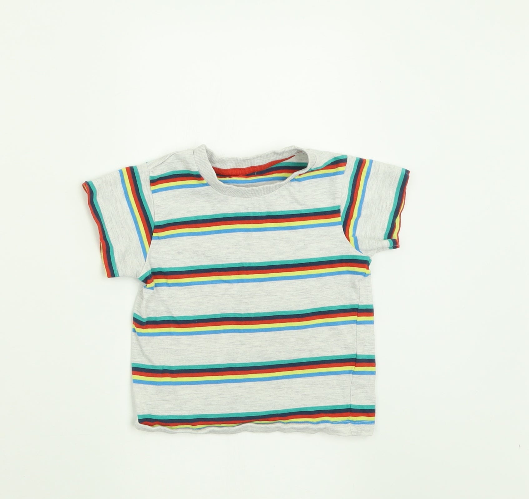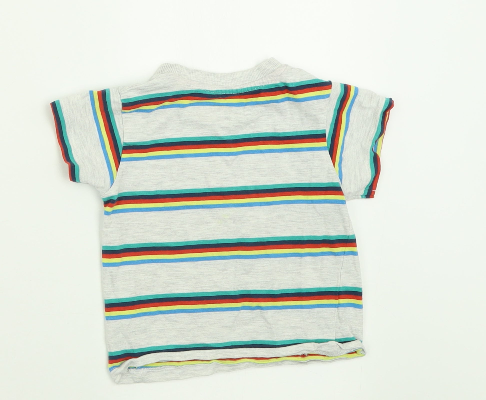 Boys Grey Striped Cotton Basic T-Shirt Size 12-18 Months Crew Neck Pullover