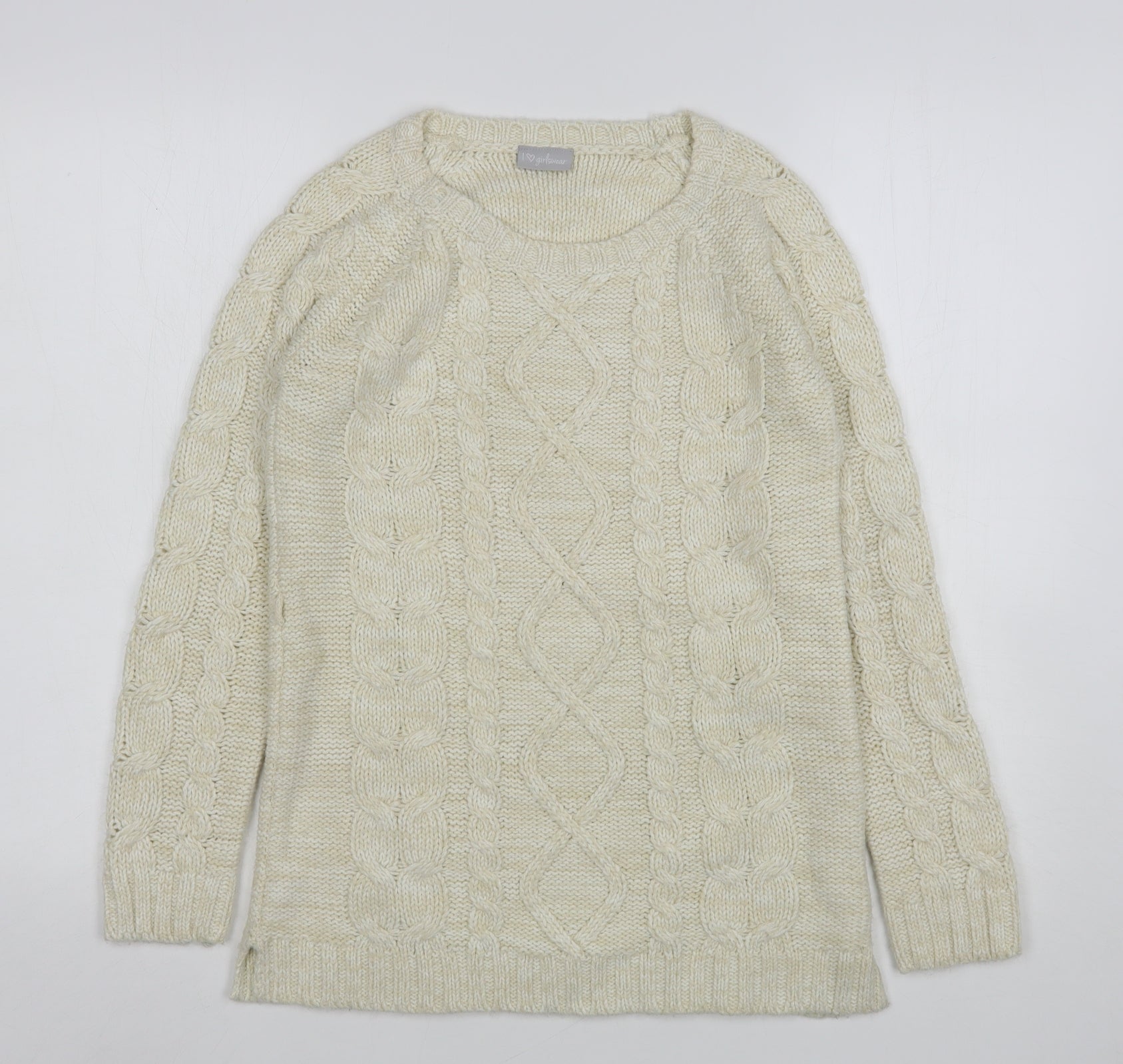 Girls Beige Round Neck Acrylic Pullover Jumper Size 12-13 Years