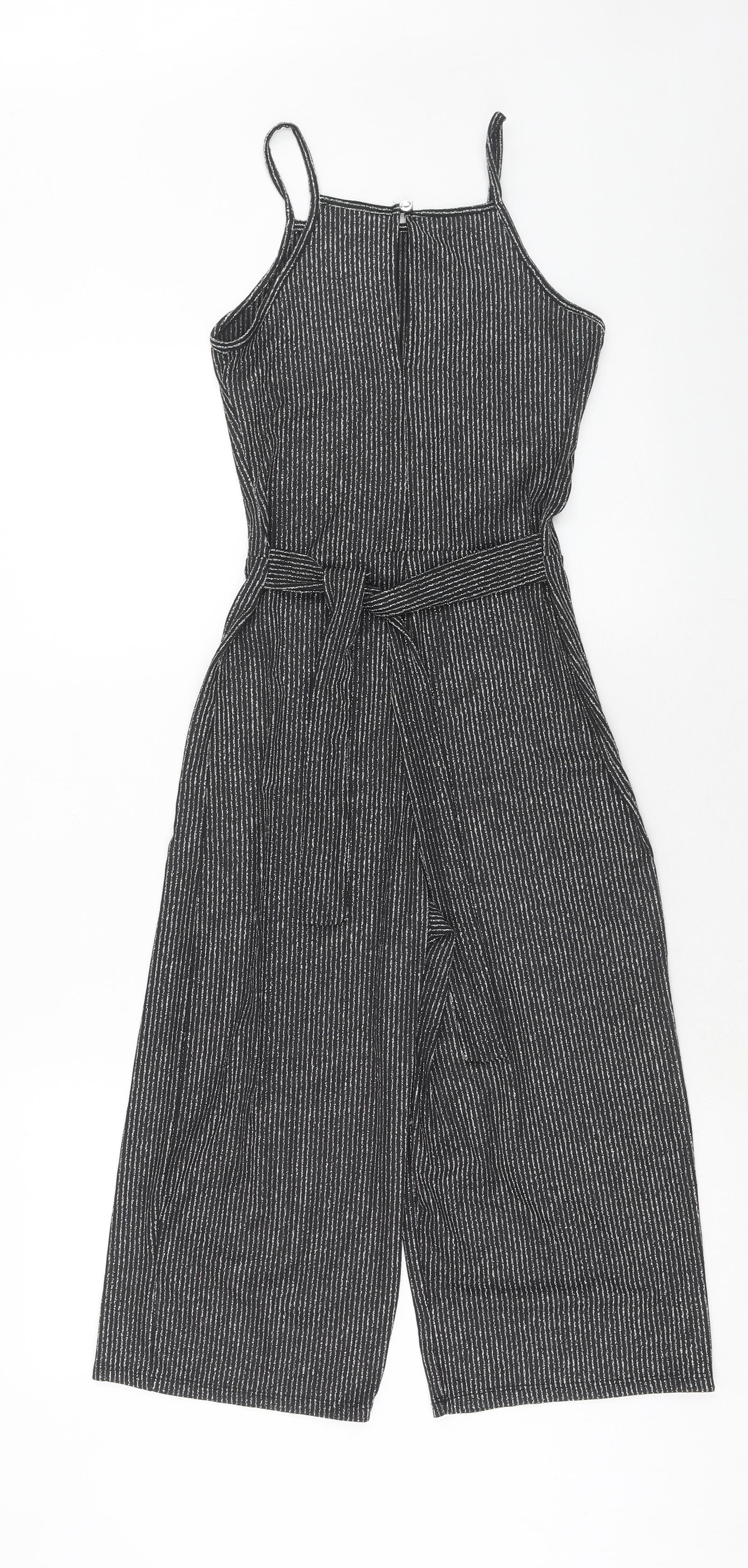 Girls Black Striped Polyester Jumpsuit One-Piece Size 12 Years Button