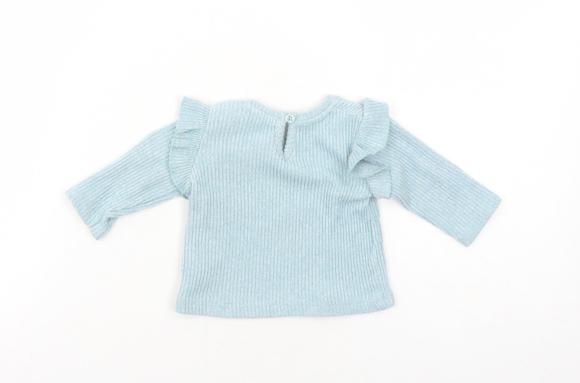 Girls Blue Cotton Basic T-Shirt Size Newborn Round Neck Button