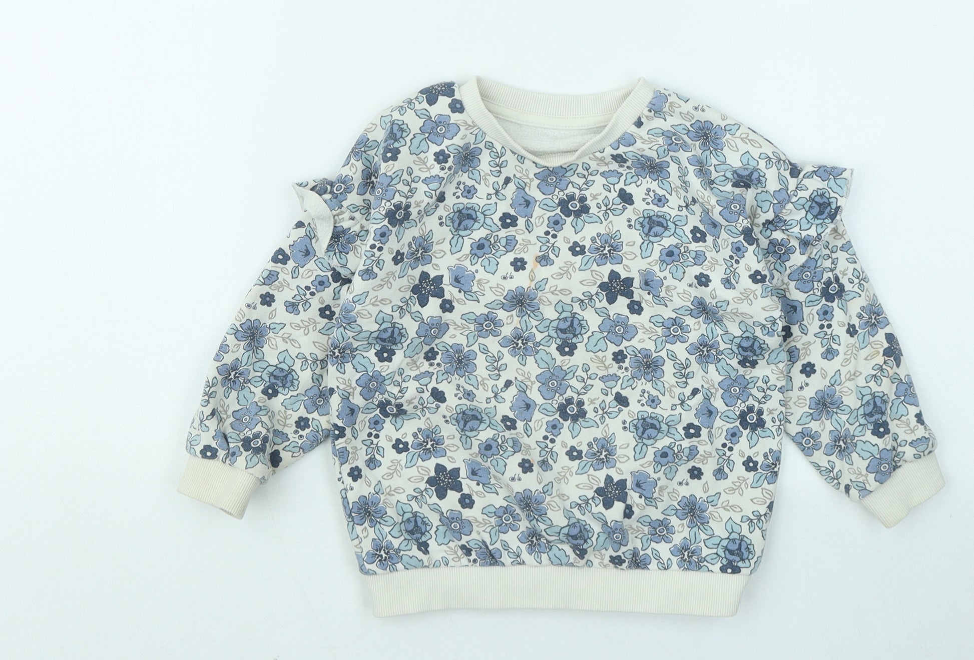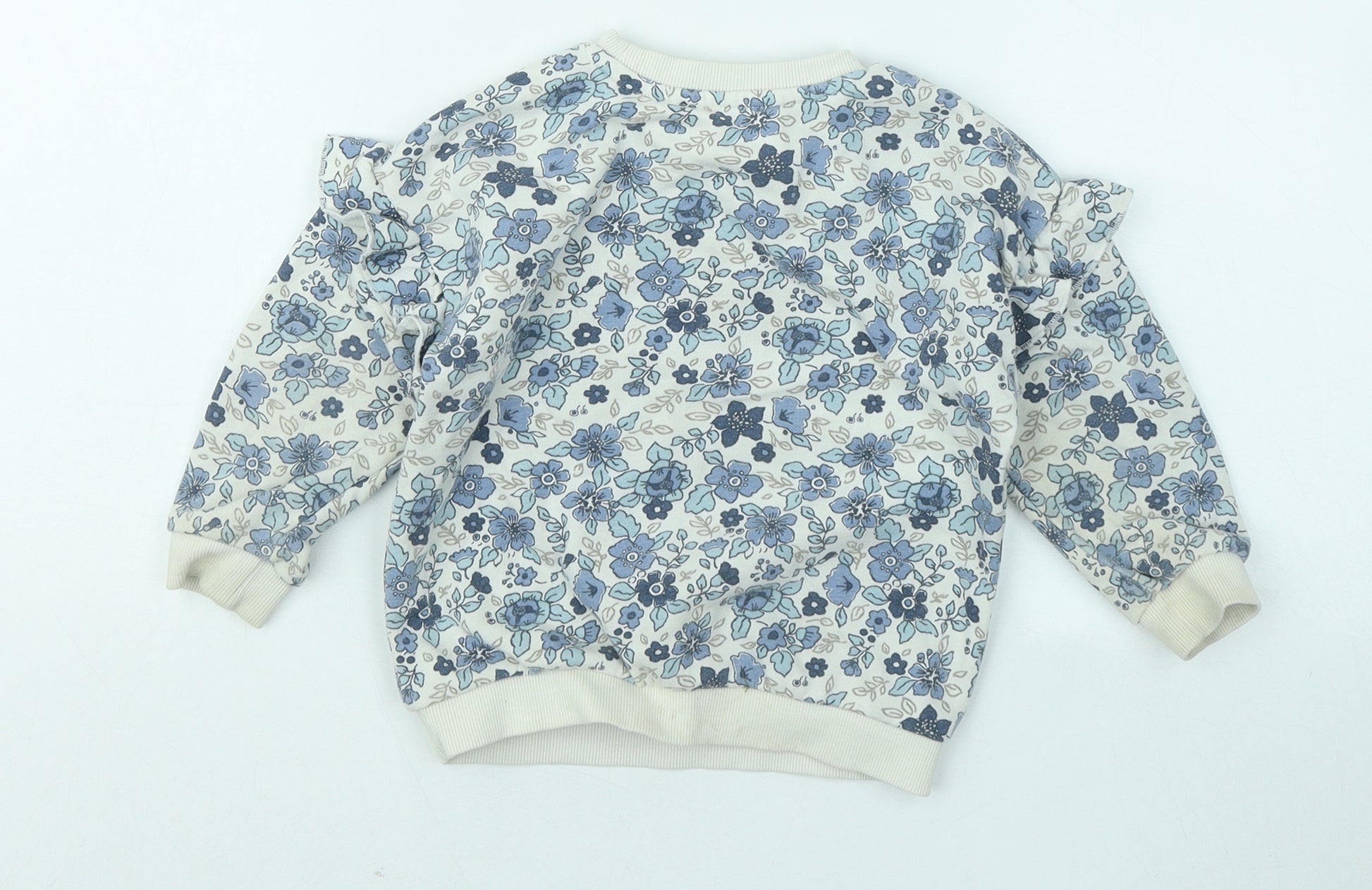 Girls Blue Floral Cotton Pullover Sweatshirt Size 2-3 Years