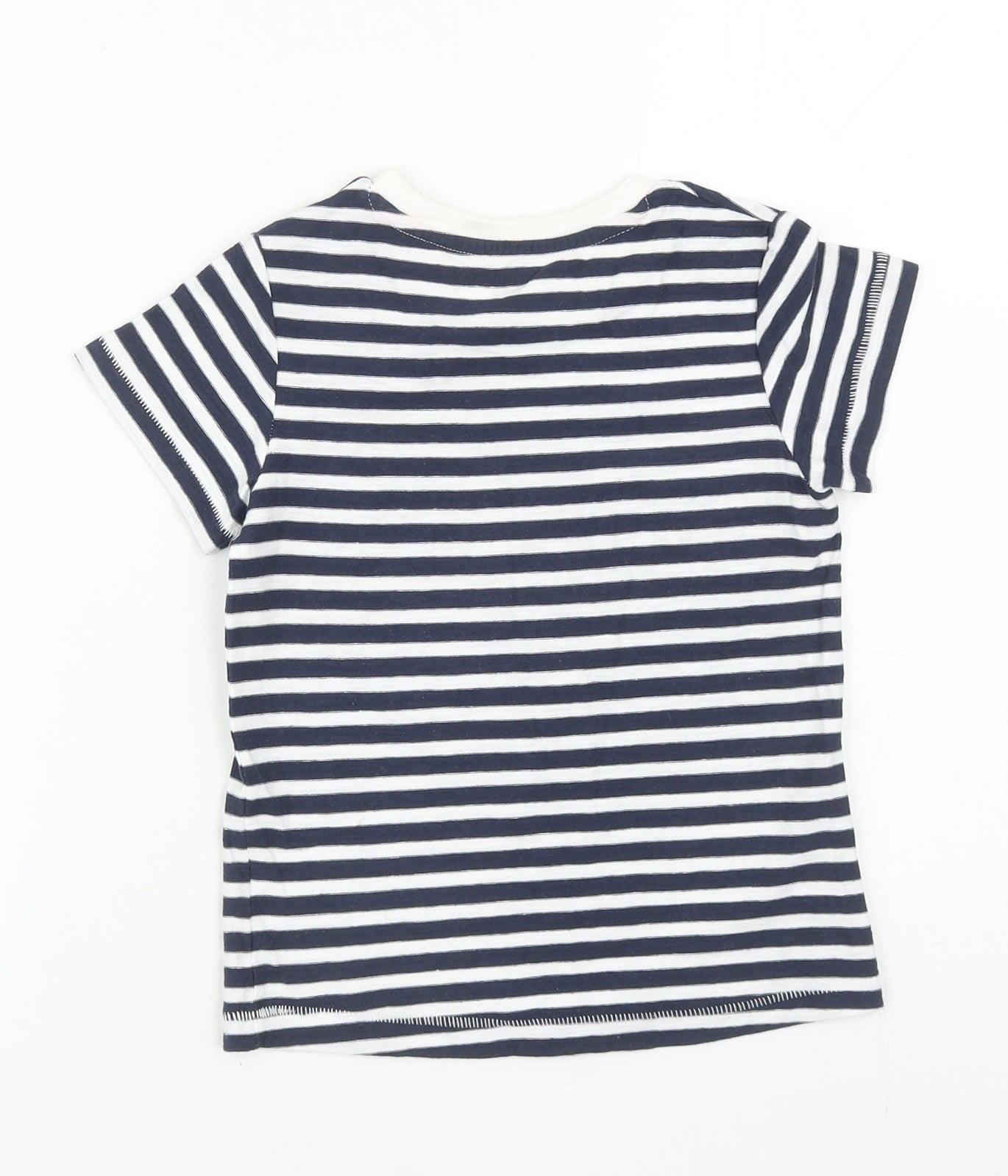 Girls Blue Striped Cotton Basic T-Shirt Size 4-5 Years Round Neck Pullover