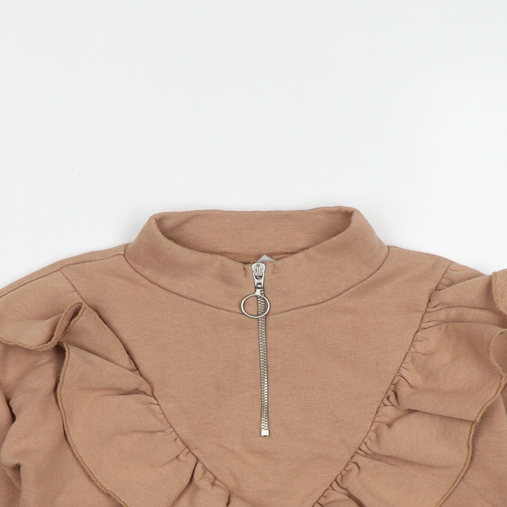 Girls Brown High Neck Polyester Pullover Jumper Size 6 Years Zip