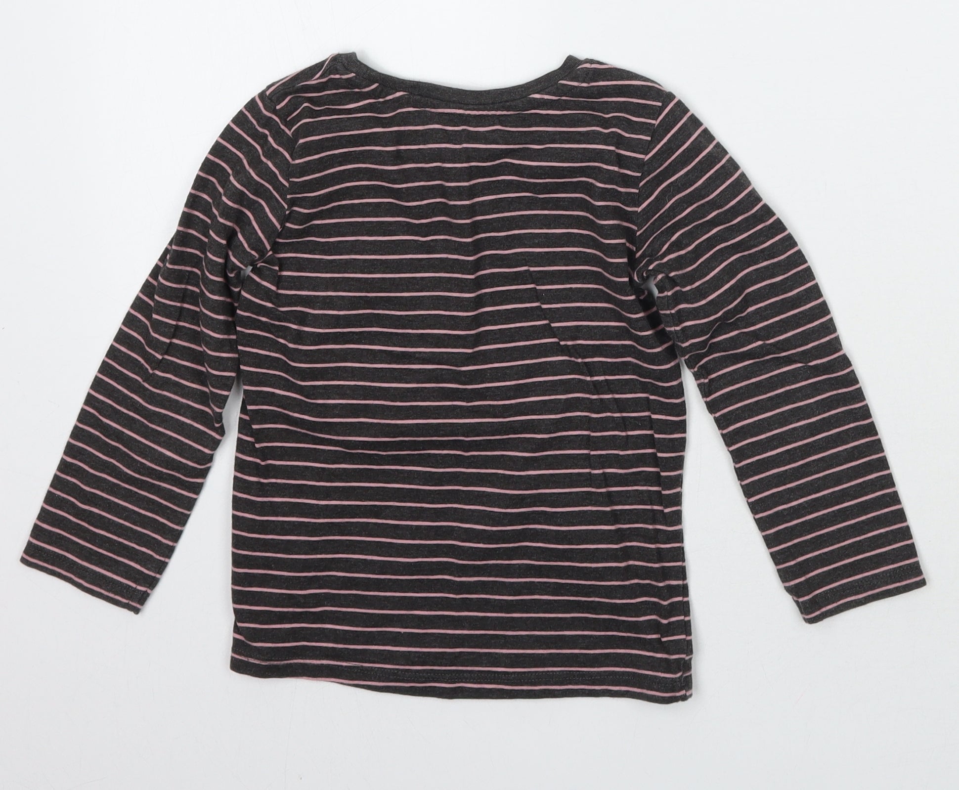 Girls Grey Striped Basic T-Shirt Size 3-4 Years