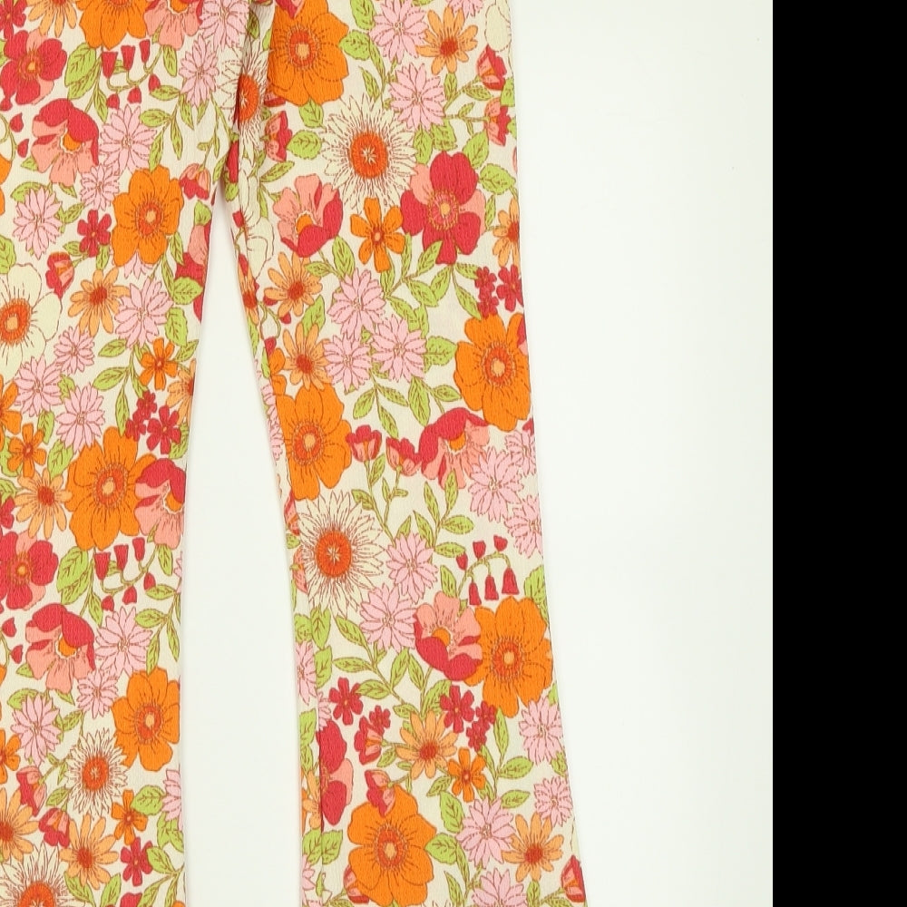 Girls Orange Floral Polyester Capri Trousers Size 11 Years Regular Pullover