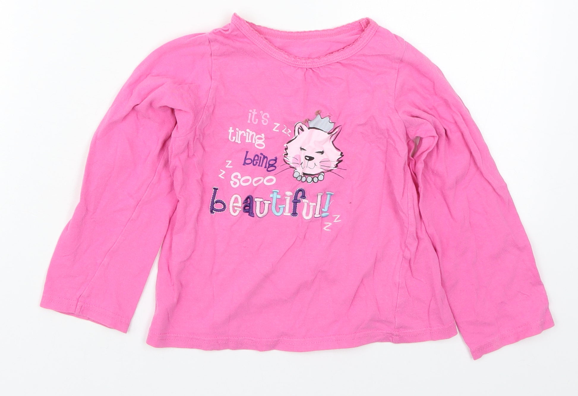 Girls Pink Solid Cotton Top Pyjama Top Size 4-5 Years Pullover - It's Tiring Being So Beautiful