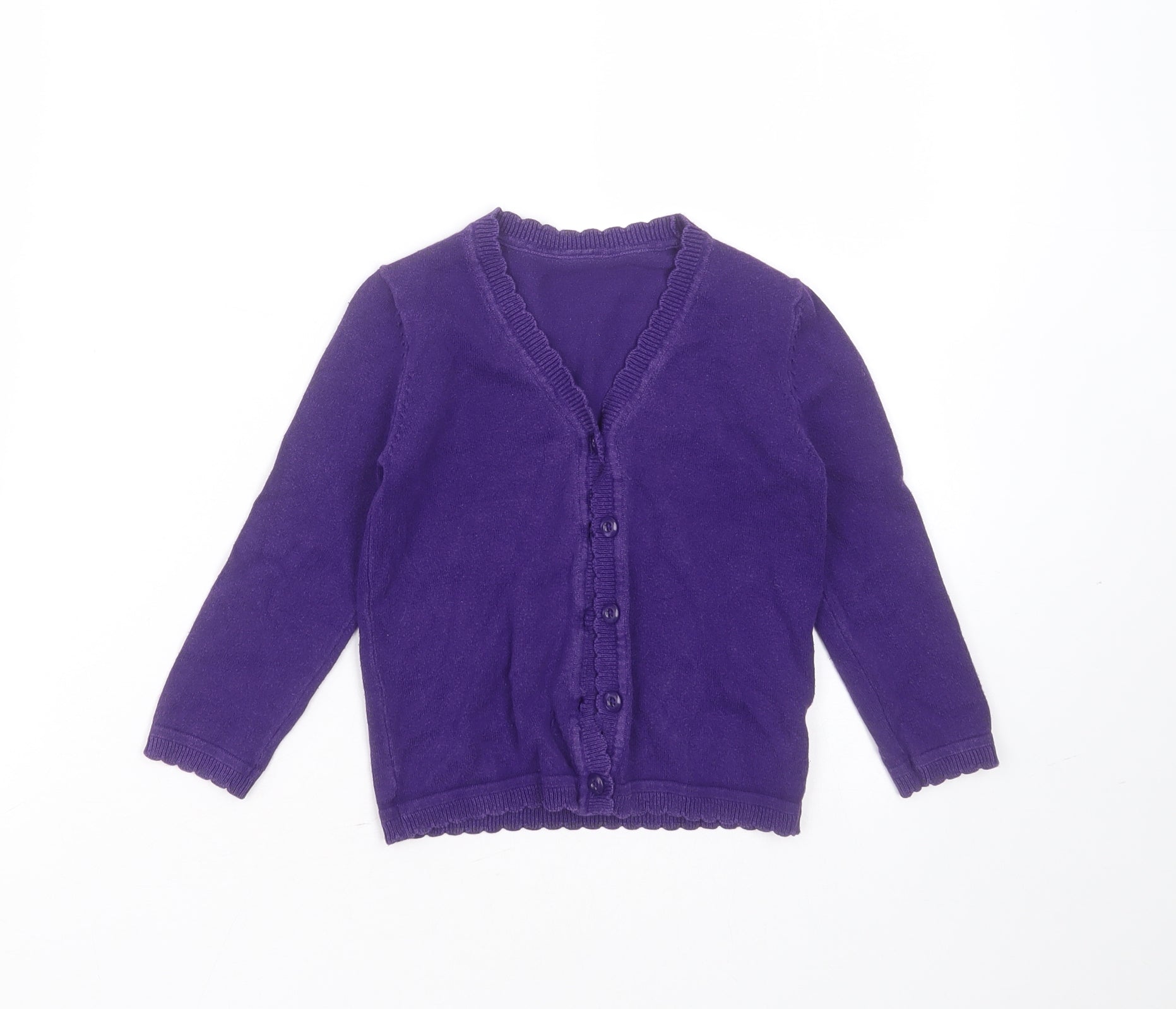 Girls Purple V-Neck Cotton Cardigan Jumper Size 4 Years Button - school