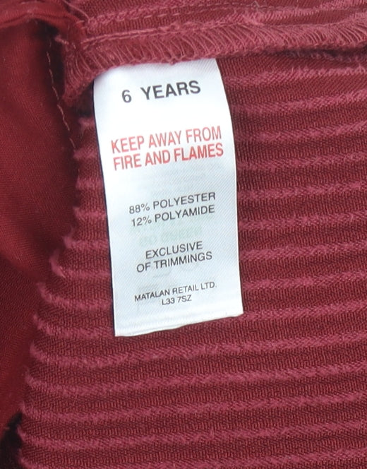 This charming girls’ red corduroy wrap skort from Matalan is a stylish and practical choice for everyday wear. Designed in a rich red hue, this skort blends the smart look of a skirt with the comfort and modesty of shorts, making it perfect for active little ones. Crafted from a soft textured corduroy fabric, the piece is made of 88% polyester and 12% polyamide, making it both durable and easy to care for, whilst ensuring a cosy and comfortable fit for cooler days. With its playful wrap-over front and ruffle detailing, the skort is ideal for adding a touch of fun and fashion to a young girl’s wardrobe. The elasticated waistband provides comfort and flexibility, allowing ease of movement and an adjustable fit for growing children. Falling to a short length, it is a versatile item that can be worn with tights and boots during autumn and winter or paired with lighter layers for transitional seasons. This skort is ideal for casual occasions, whether for school, playdates, or family outings, and offers both style and functionality. The machine washable care instructions make it a practical option for busy families, ensuring fuss-free cleaning. In excellent pre-loved condition, with no tags attached, this piece shows no signs of wear, keeping it fresh and ready for its next owner. A great addition to any girl’s clothing collection, this wrap skort is a fashionable and versatile option that ensures both comfort and charm in one neat little package.