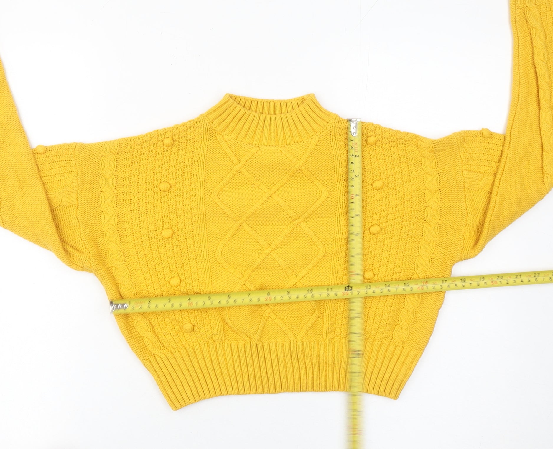 Girls Yellow Cable Knit Pullover Jumper Age 12 Years Mock Neck