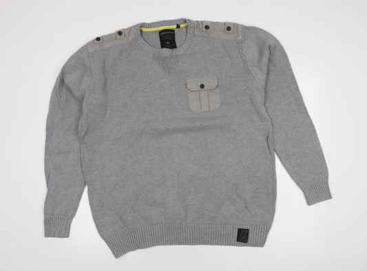 Kensington Eastside Men's Grey Colour Block Chunky Knit Pullover Jumper 3XL