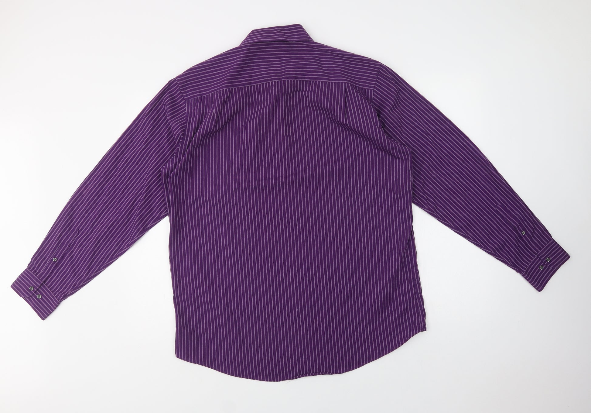 Marks and Spencer Mens Purple Striped Cotton Dress Shirt Size 16 Collared Button