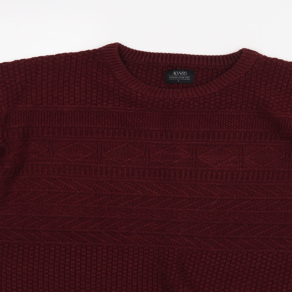 Tokyo Laundry Men's Red Cable-Knit Crew Neck Jumper Size L
