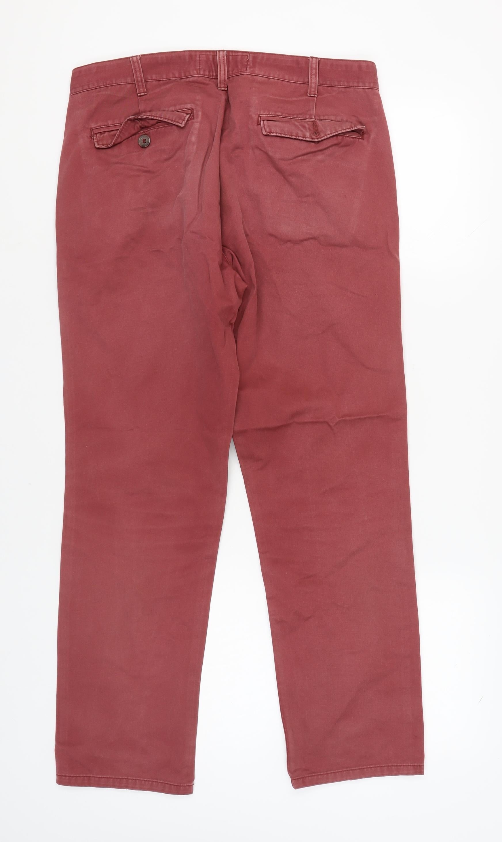 Discover a classic blend of style and comfort with these Matalan men's chinos, perfect for any wardrobe. Designed in an appealing red colour, these trousers bring a pop of boldness to your attire, seamlessly pairing with various tops for both casual and semi-formal occasions. Crafted from 100% cotton, the material ensures breathability and comfort, ideal for everyday wear. The slim fit design lends a modern and streamlined silhouette, enhancing your physique effortlessly. Featuring a 36-inch waist and a 30-inch inside leg, these chinos provide a perfect fit for those seeking comfort without compromising style. The flat front pattern and button closure deliver an elegant simplicity, while the lack of accents keeps the look clean and versatile. Perfect for men who prefer regular sizing, this pair promises a comfortable fit with a timeless appeal. These chinos, made by Matalan, known for their quality, demonstrate remarkable durability, maintaining their appearance even after multiple wears. Given their used condition with only minor wear, they offer excellent value for their price, making them a fantastic choice for the fashion-conscious shopper looking on a budget. Add these Matalan chinos to your wardrobe and enjoy the perfect blend of style, comfort, and affordability.