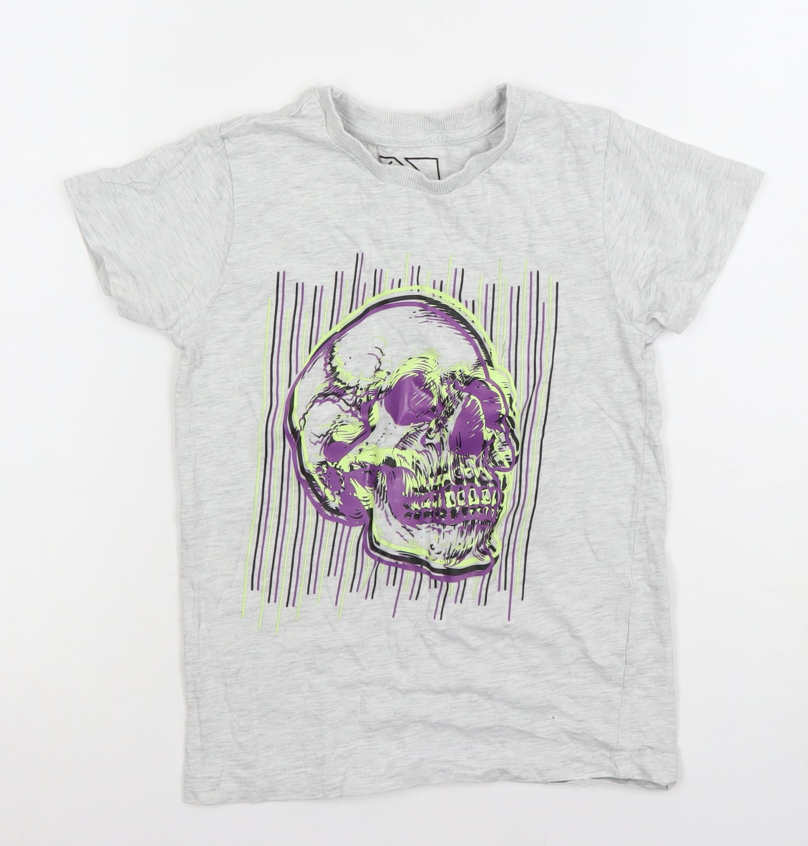 Urbn-Dept Boys Grey Skull Graphic Short Sleeve T-Shirt 8 Years Casual Top