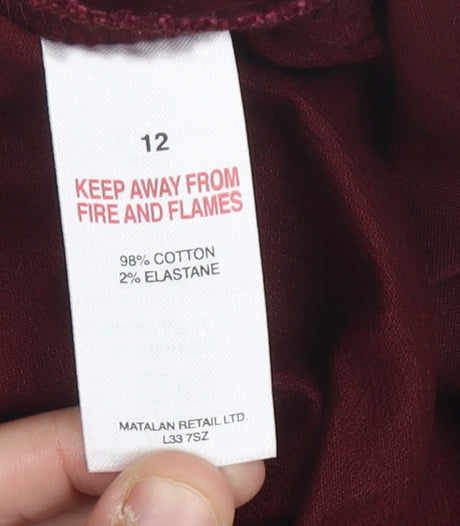 Discover sophistication and style with this Matalan Women’s Red Pencil Skirt, perfectly designed to enhance your wardrobe with its elegant and versatile features. Crafted in a rich red hue, this skirt exudes a classic charm that makes it ideal for various occasions. Made from a high-quality blend of 98% Cotton and 2% Elastane, the fabric is soft against the skin while offering a bit of stretch for comfort. This combination ensures a flattering fit that enhances your silhouette without compromising on comfort.The straight, pencil style provides a sleek, streamlined look, perfect for a woman wanting an elegant yet understated attire. Accentuated with button detailing down the front, this piece adds a touch of refinement to any ensemble while the absence of any distinctive pattern keeps it versatile for mix-and-match options. It's an ideal choice for casual outings, offering a stylish yet comfortable wear. Pair it with a blouse and heels for a polished office look, or with a casual top and sneakers for a laid-back weekend vibe.Despite being pre-owned, this skirt is in excellent condition with only slight signs of wear, maintaining its vibrant colour and structure, and making it a great addition to your seasonal collection. It’s tailored to suit Autumn and Winter wardrobes best, providing a touch of warmth and style during the cooler months. Easy to care for and practical, this skirt will surely become a staple in your fashion rotation. Enhance your wardrobe today with this timeless piece that combines simplicity and style, making sure you shine in every season.