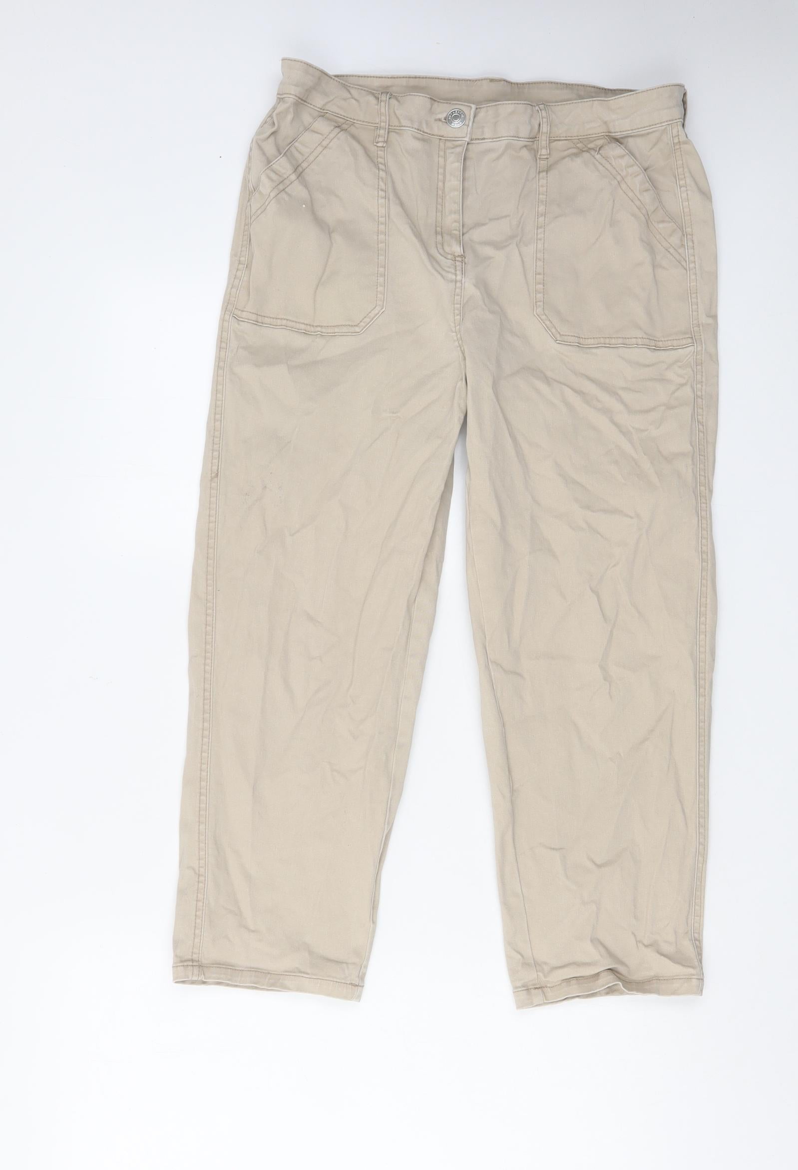 Womens Beige Cotton Cropped Jeans Size 14 L23 in Regular Zip