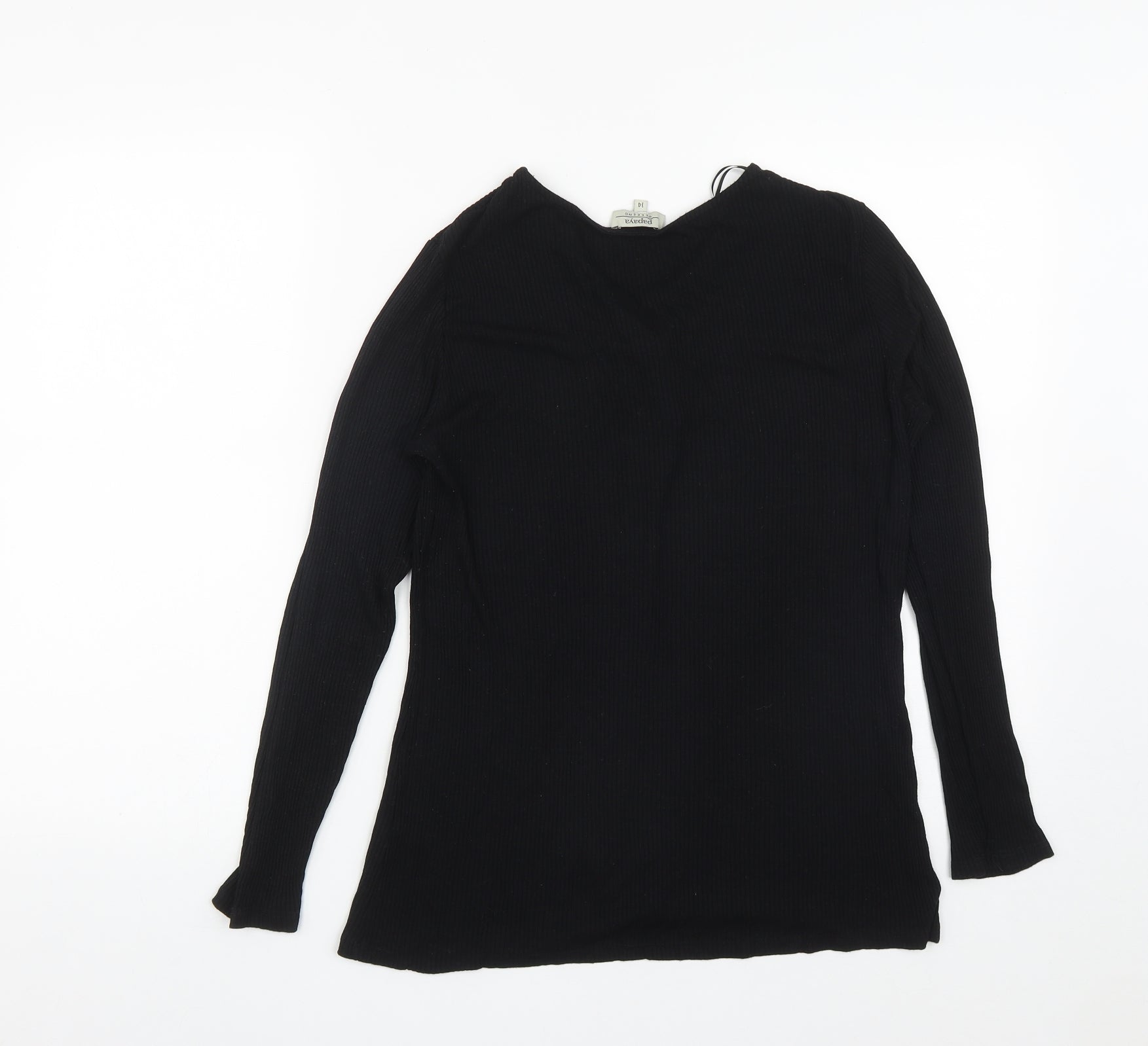 Womens Black Viscose Basic T-Shirt Size 14 V-Neck