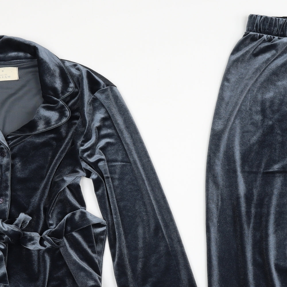Womens Blue Solid Polyester Top Pyjama Set Size XS Button