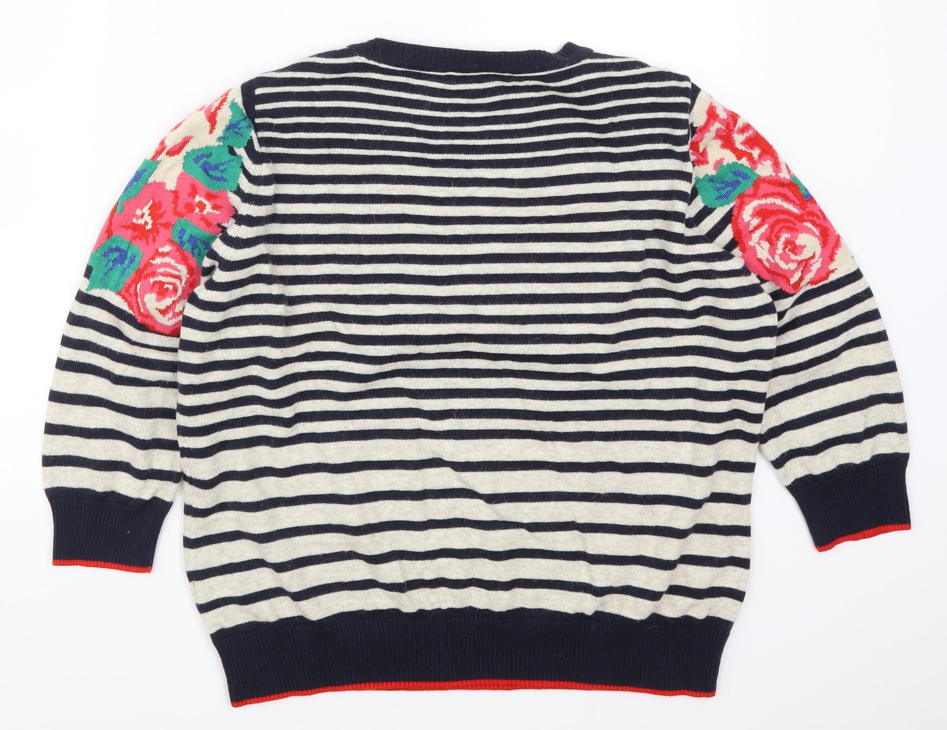 Womens Blue Striped Knit Pullover Jumper Size 18 - Flowers