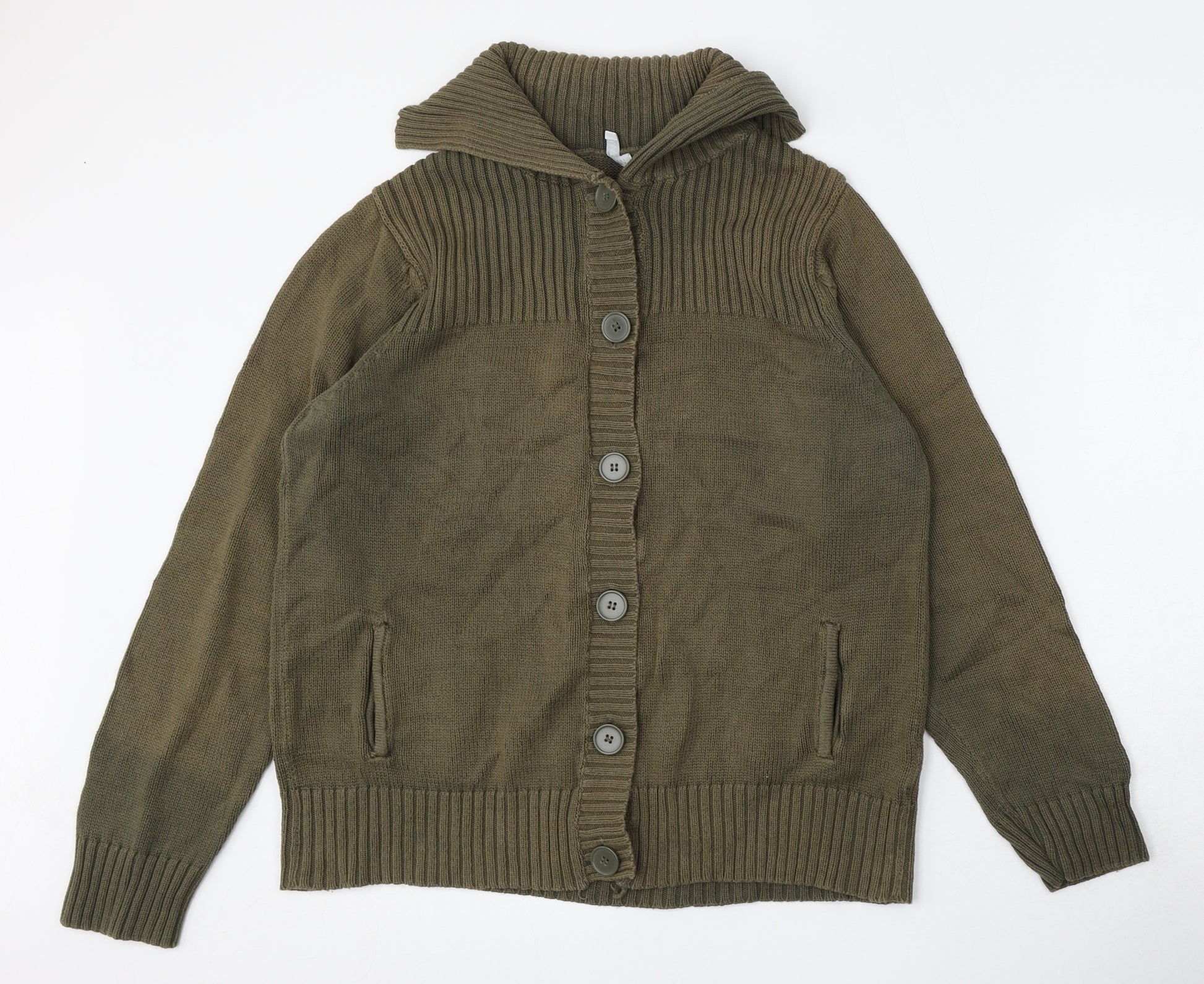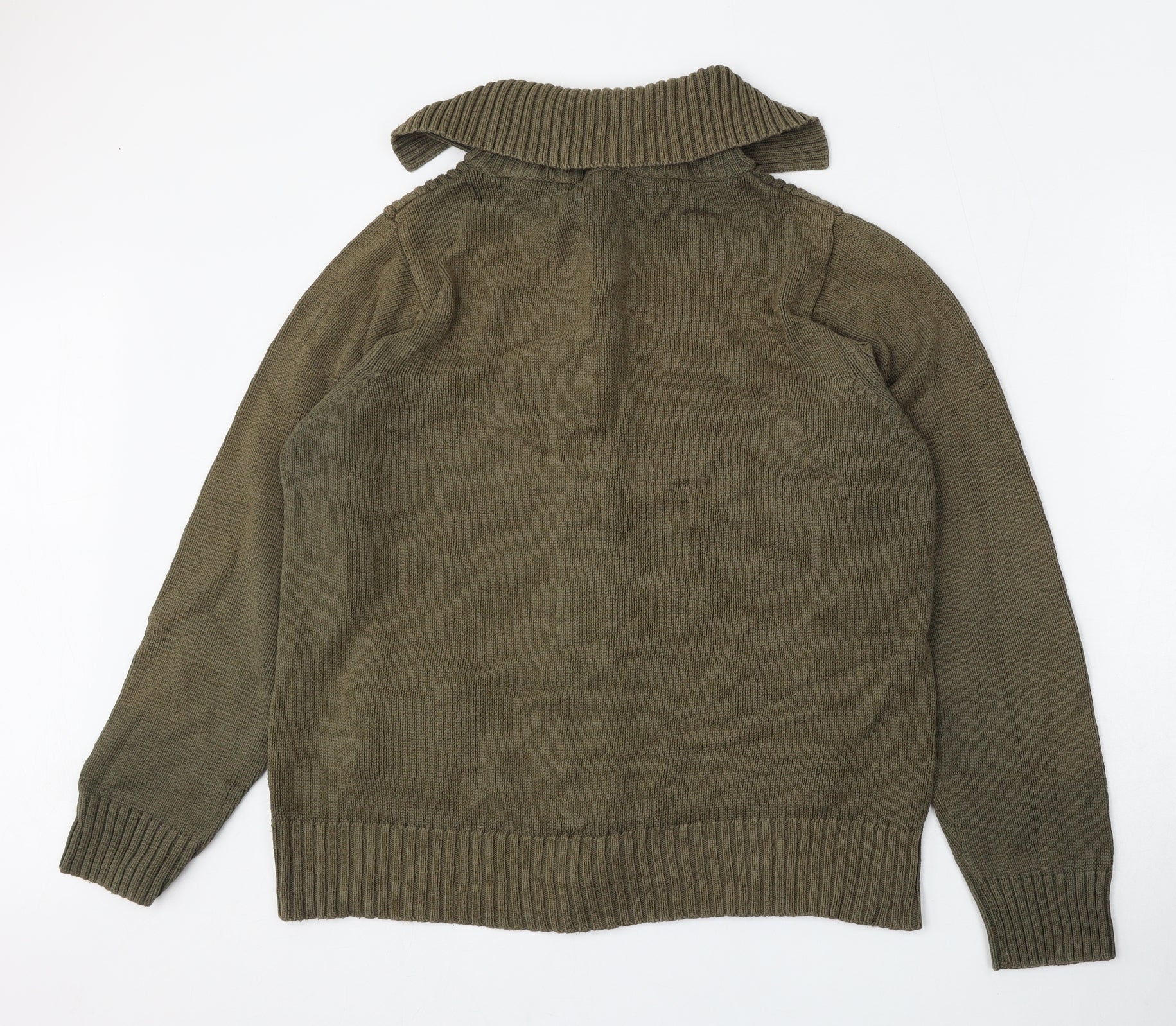 Womens Green Roll Neck Cotton Cardigan Jumper Size 20