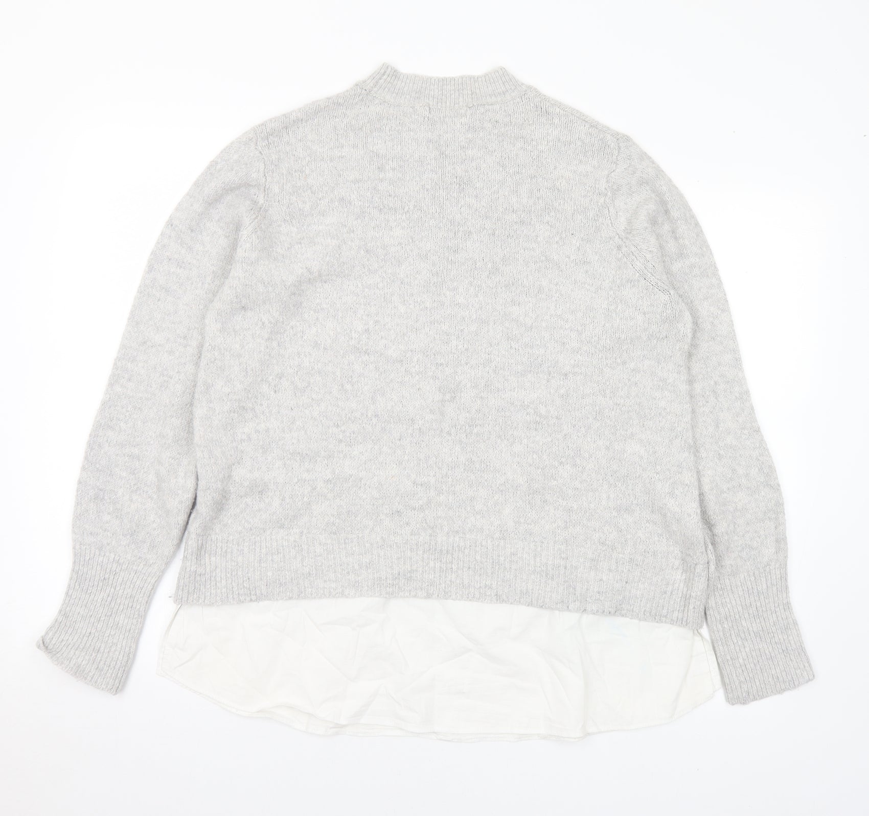 Womens Grey Mock Neck Acrylic Pullover Jumper Size L