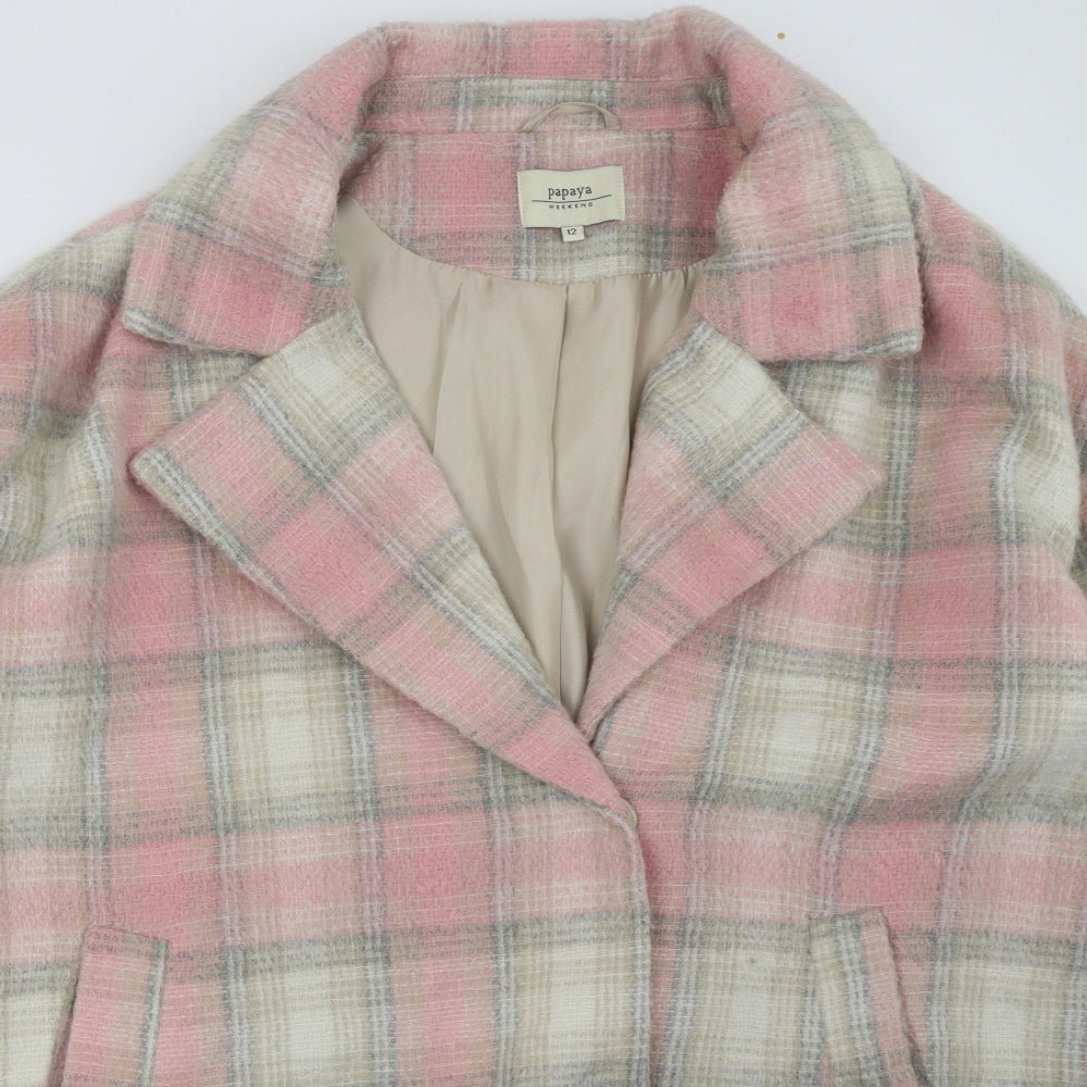 Womens Pink Check Overcoat Coat Size 12 Button