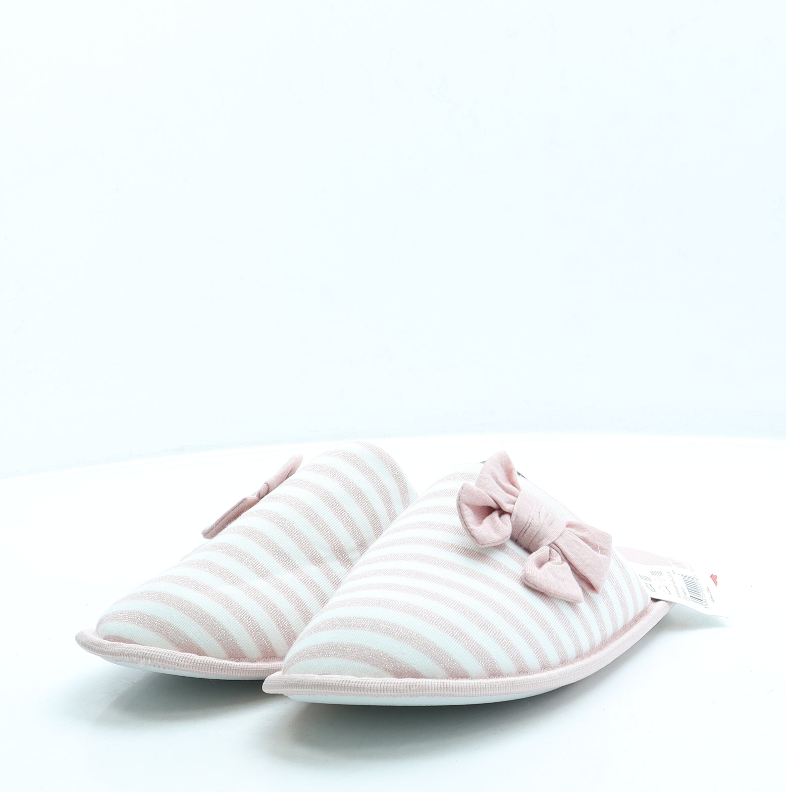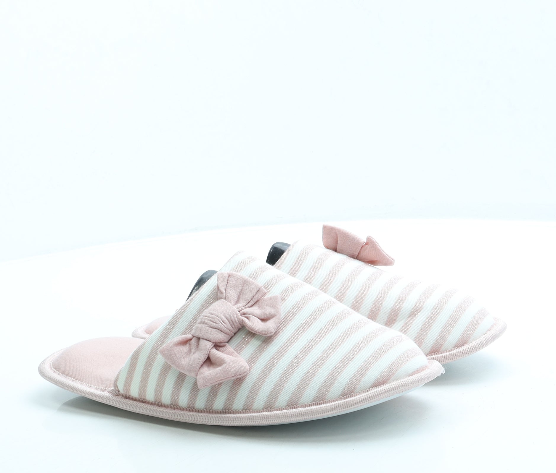 Womens Pink Striped Polyester Slip On Slipper UK - Size 7-8