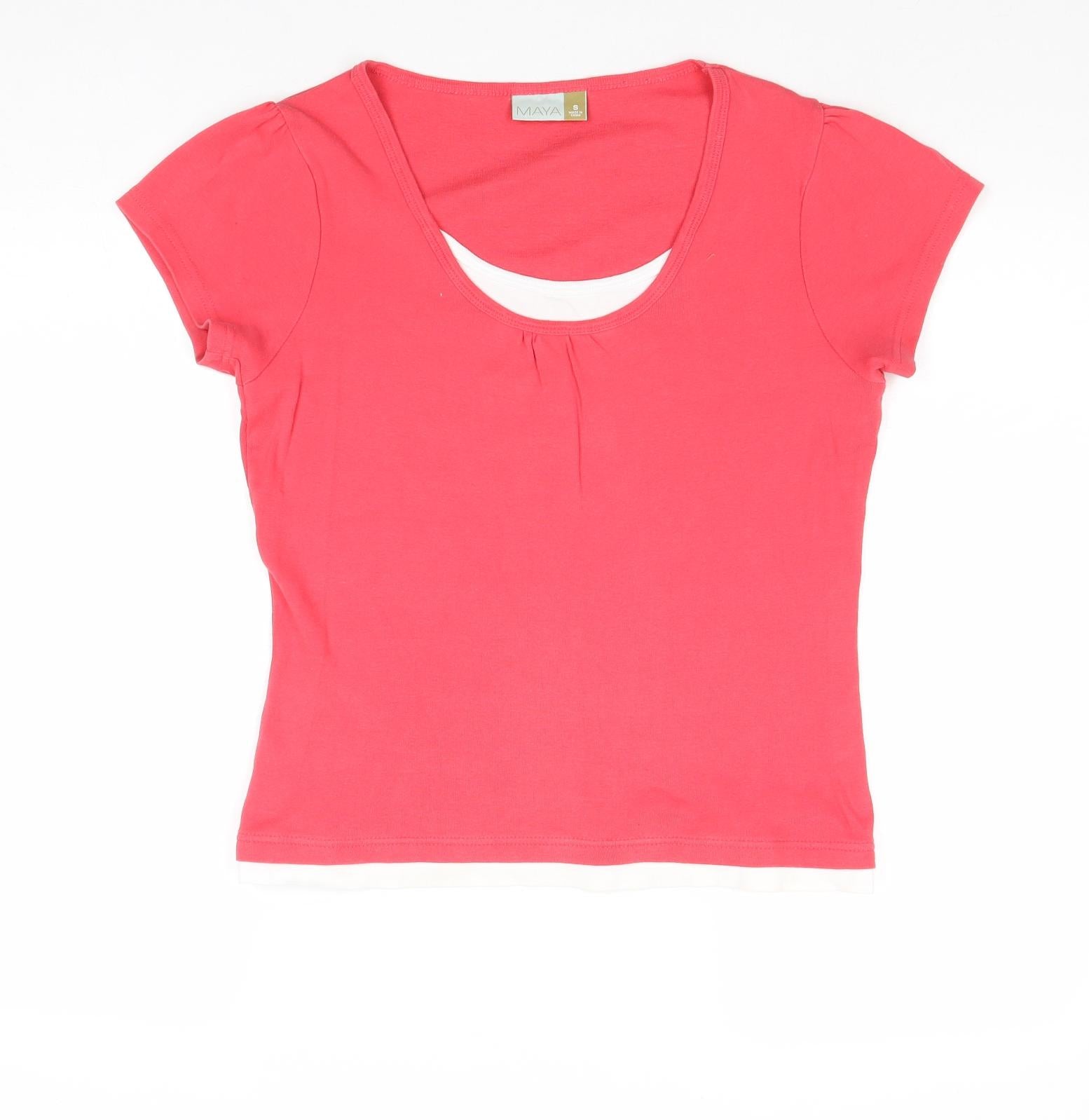 Womens Pink Cotton Basic T-Shirt Size S Scoop Neck