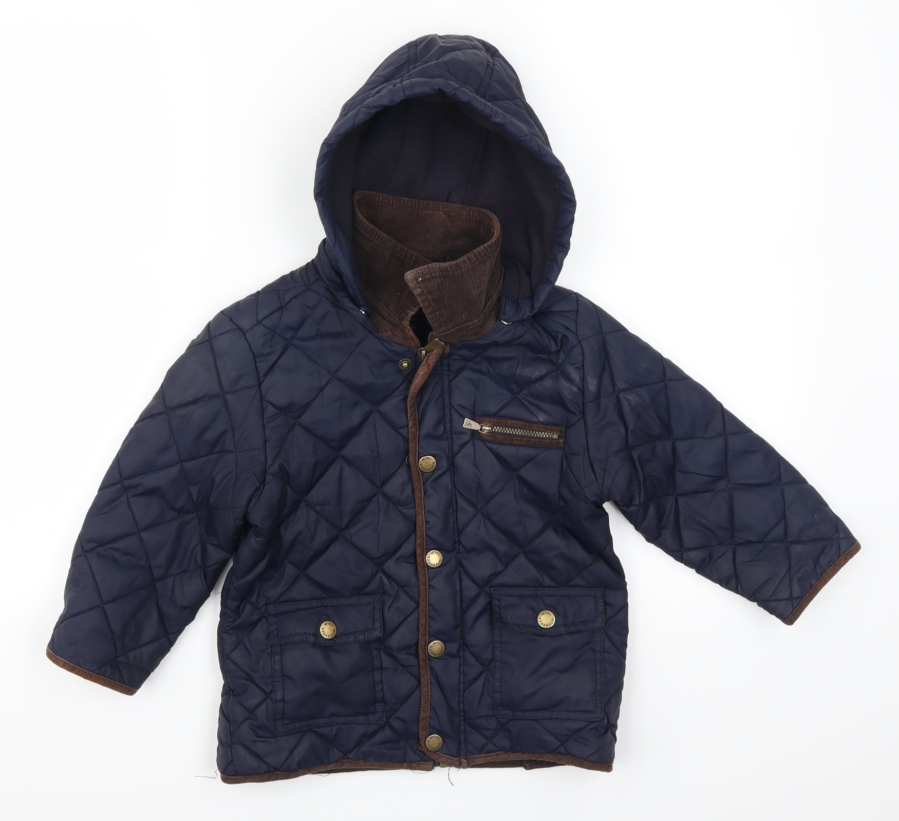 Next Boys Blue Hooded Faux Fur Trim Parka Coat 3 Years