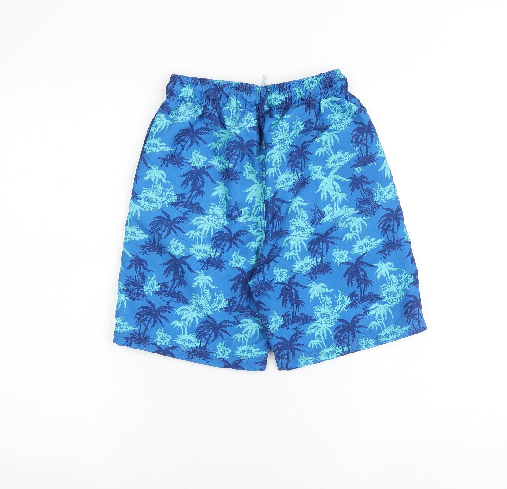 Boys Blue Geometric Polyester Bermuda Shorts Size 12-13 Years Regular Drawstring - Swim Shorts Palm Print