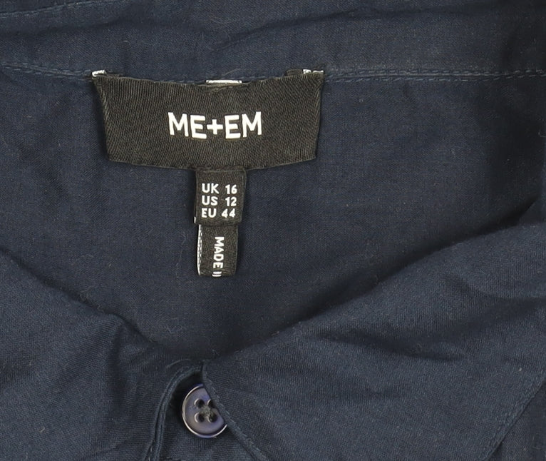 Elevate your wardrobe with this stunning ME+EM women's dress in an elegant shade of blue. This dress features a classic collared neckline and a sophisticated button closure, providing both style and practicality. Designed for women, it is available in size 16, ensuring a flattering fit for various body types. Its sleek and minimalist design makes it versatile enough for different occasions, from casual outings to more formal events. The dress is crafted with quality materials, offering excellent comfort and durability. Despite being in excellent pre-owned condition, it still captures the charm and sophistication of a brand new item, making it a valuable addition to your collection. The simple yet elegant patternless design provides a blank canvas to accessorise according to your personal style. Step out in confidence with this timeless piece, perfect for enhancing your fashion statement. Available at an appealing price, this dress is a must-have for fashion-forward individuals looking for both quality and style.