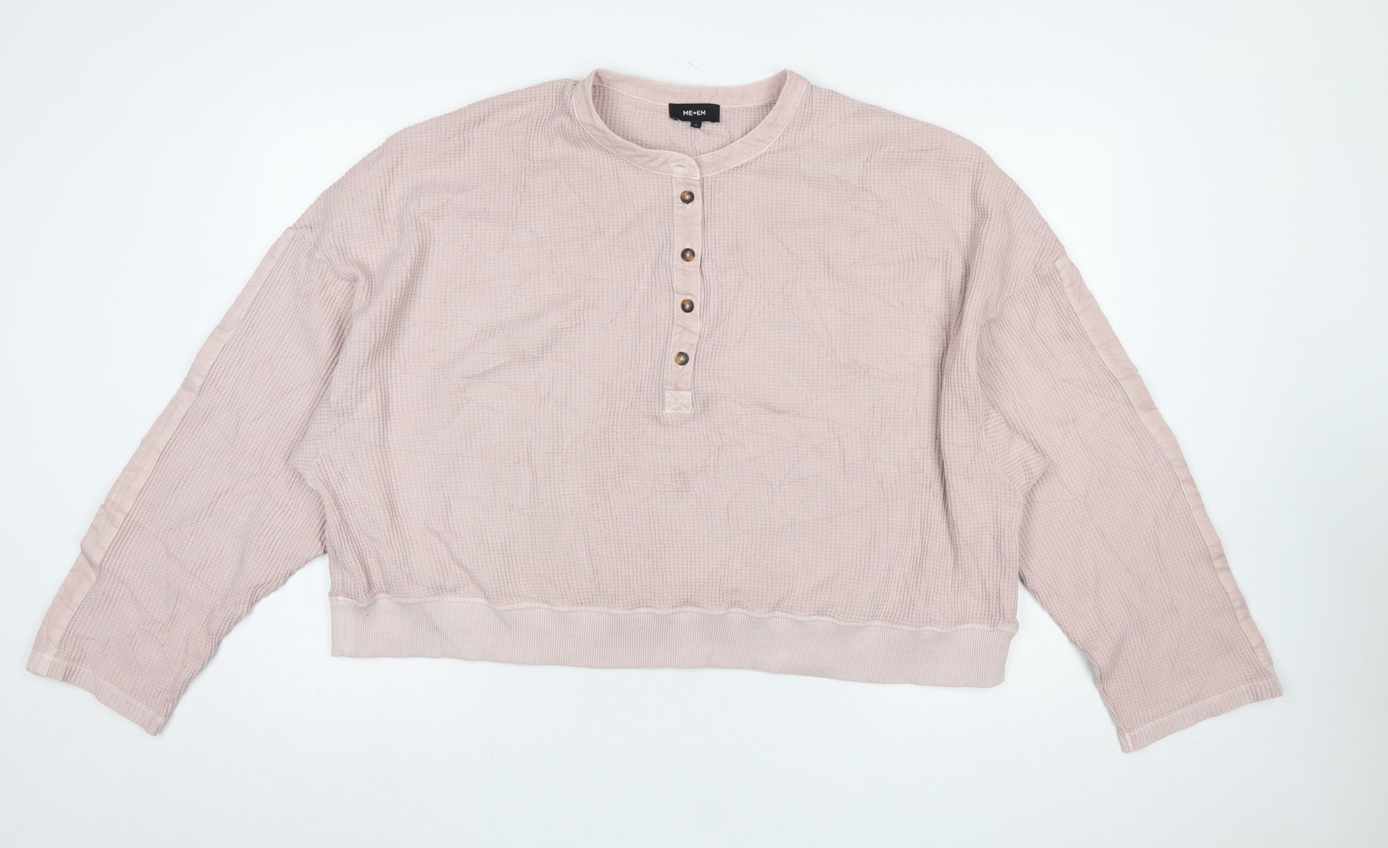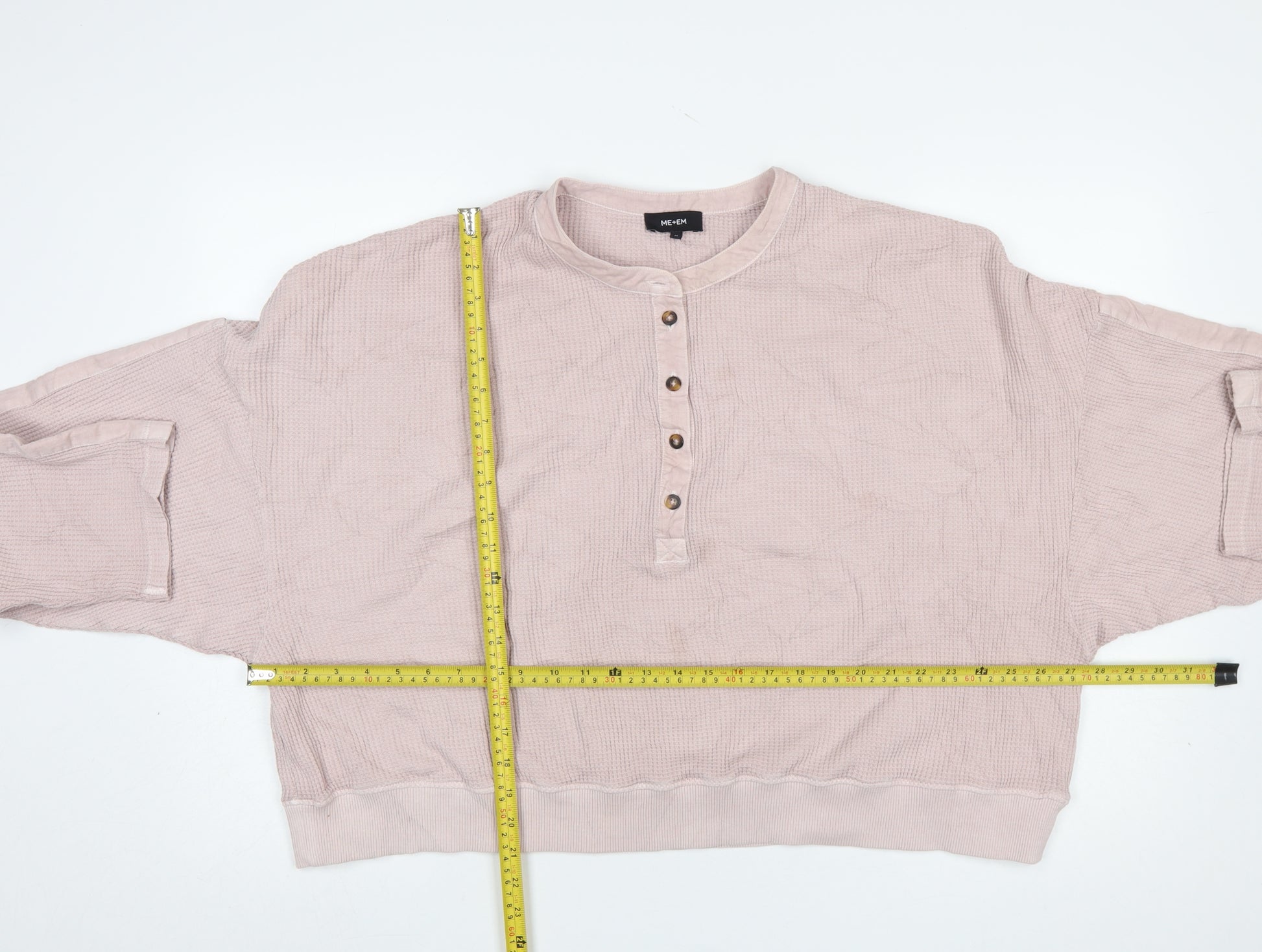 Womens Pink Henley Sweatshirt Medium Cotton Relaxed Fit
