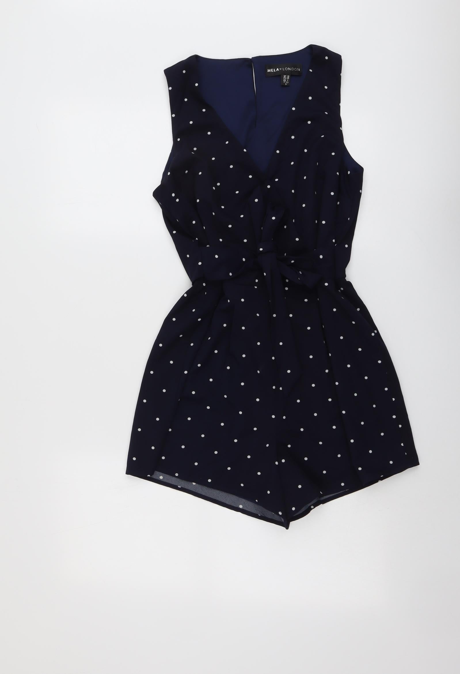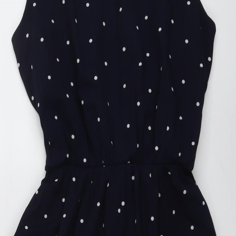 Womens Blue Polka Dot Polyester Playsuit One-Piece Size 10 Button