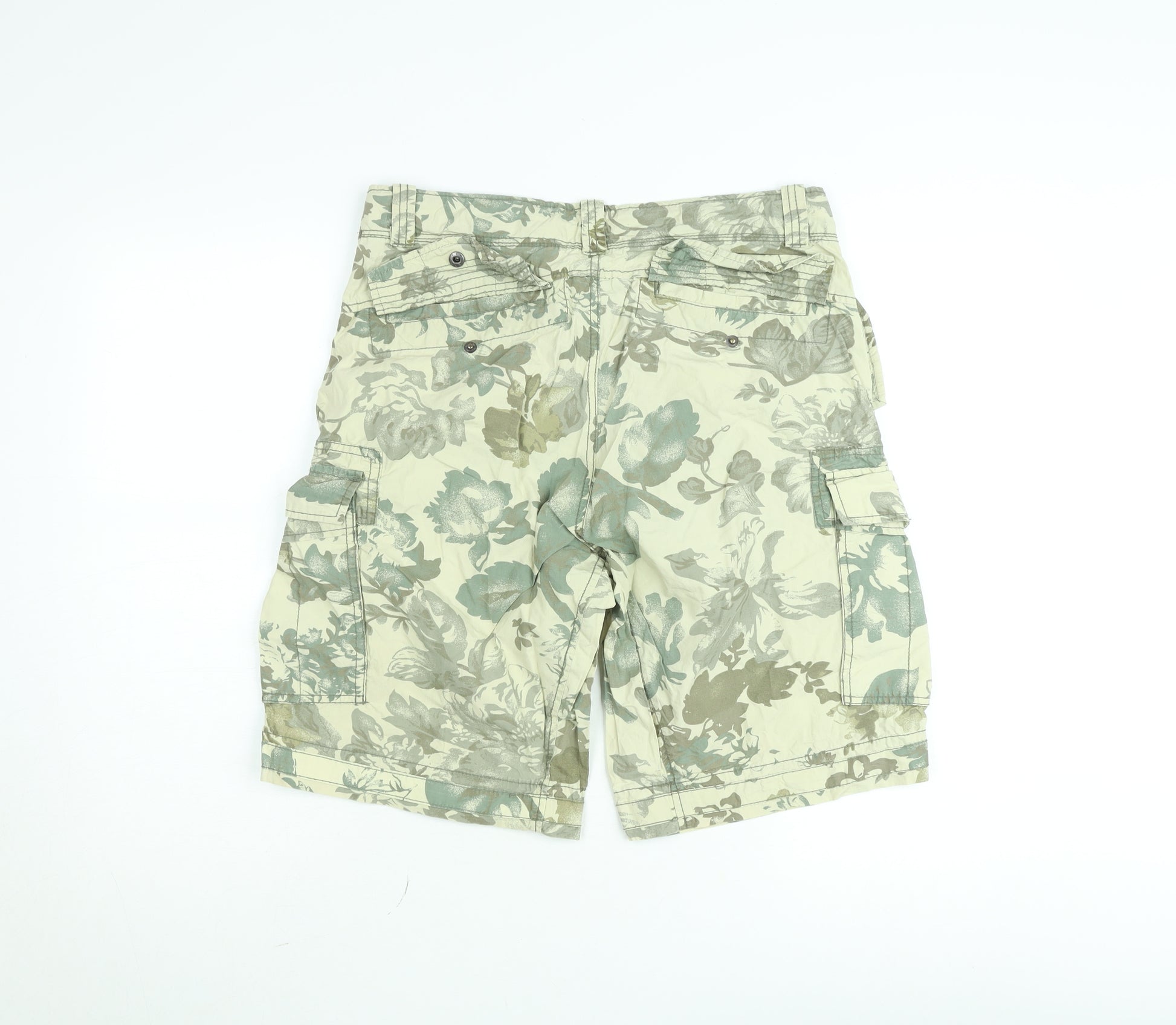 Men’s Beige Floral Cargo Shorts W32 Regular Fit Casual Summer