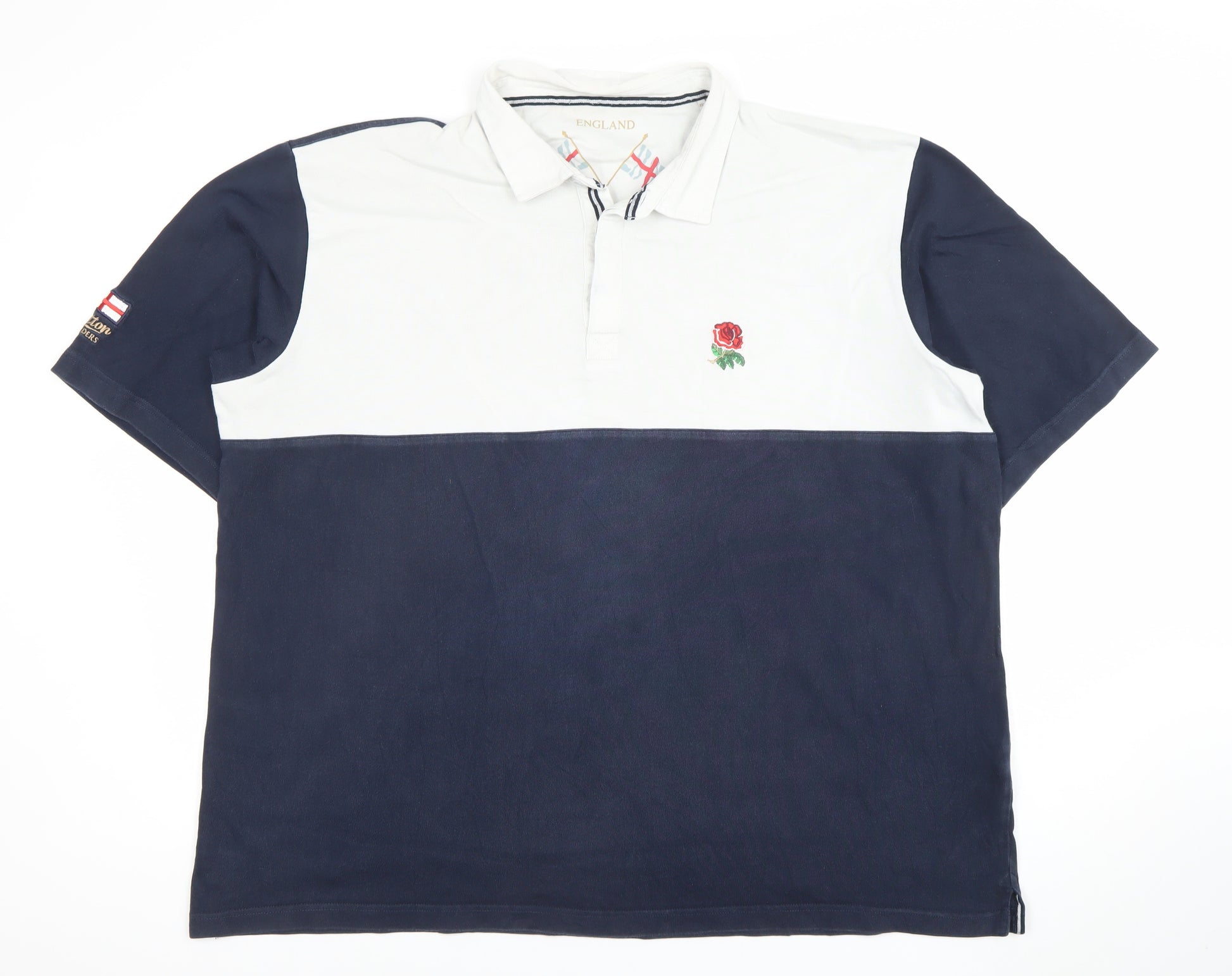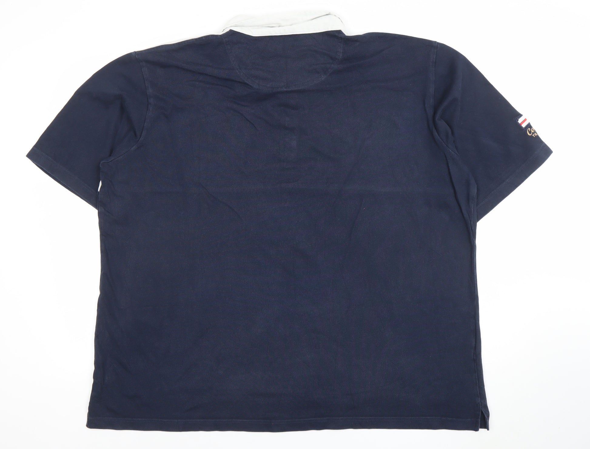 Men’s Rugby Polo Shirt Blue White 3XL Cotton Embroidered Rose