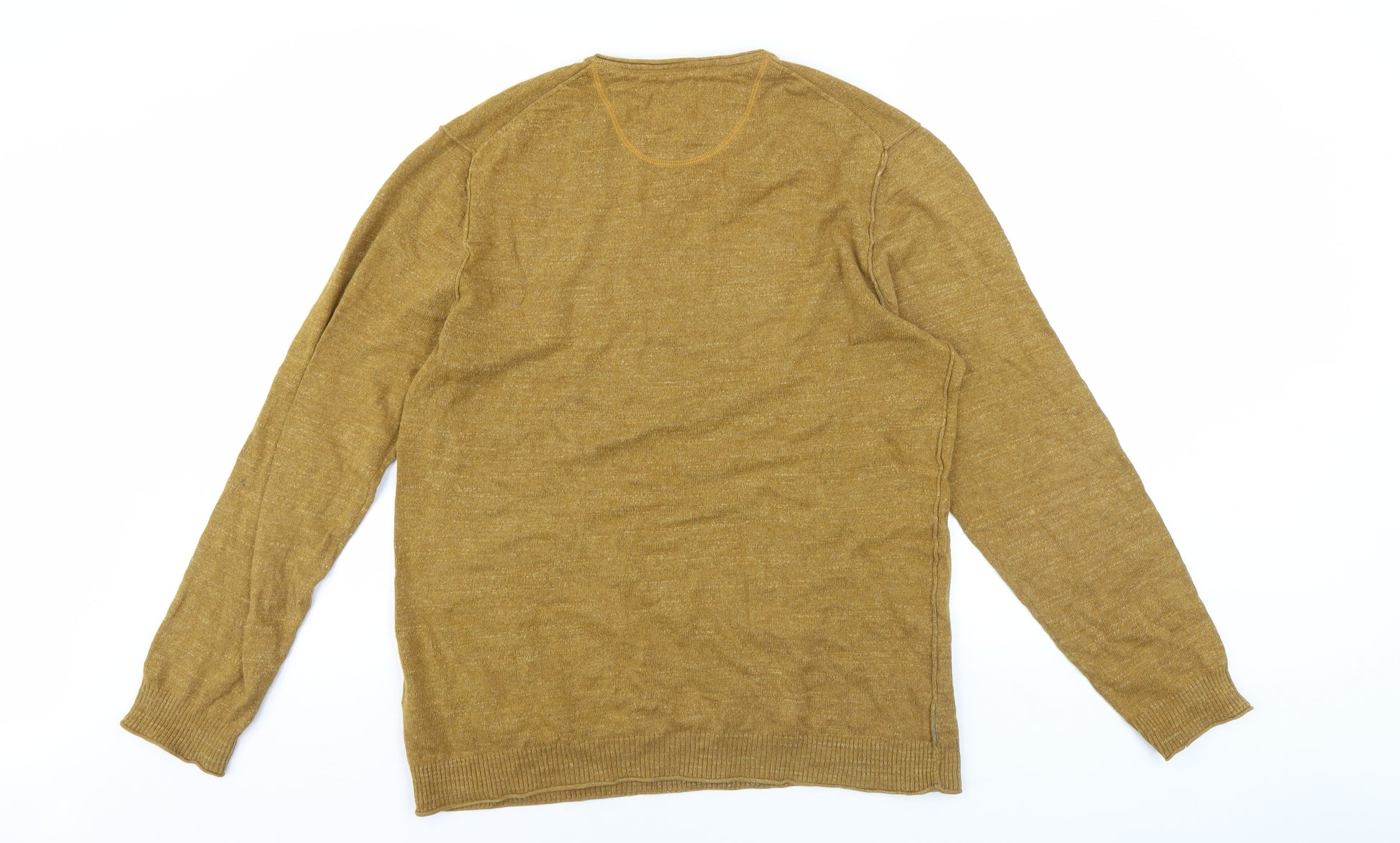 Upgrade your wardrobe with this classic men's brown pullover jumper. Crafted from 100% cotton, this knit piece is designed to offer unmatched comfort and style. The rich brown hue and V-neckline add a touch of elegance, making it an ideal choice for both casual and slightly formal settings. Designed for a regular fit, this jumper ensures ease of movement with its long sleeves, perfect for layering during the cooler months. Whether you're dressing up for a weekend outing or staying in for a cosy evening, this versatile pullover has you covered. Though this piece shows slight wear, it remains in excellent condition, promising durability and timeless appeal. Enhance your collection with this essential piece – a must-have for any fashion-conscious individual looking for quality and style.