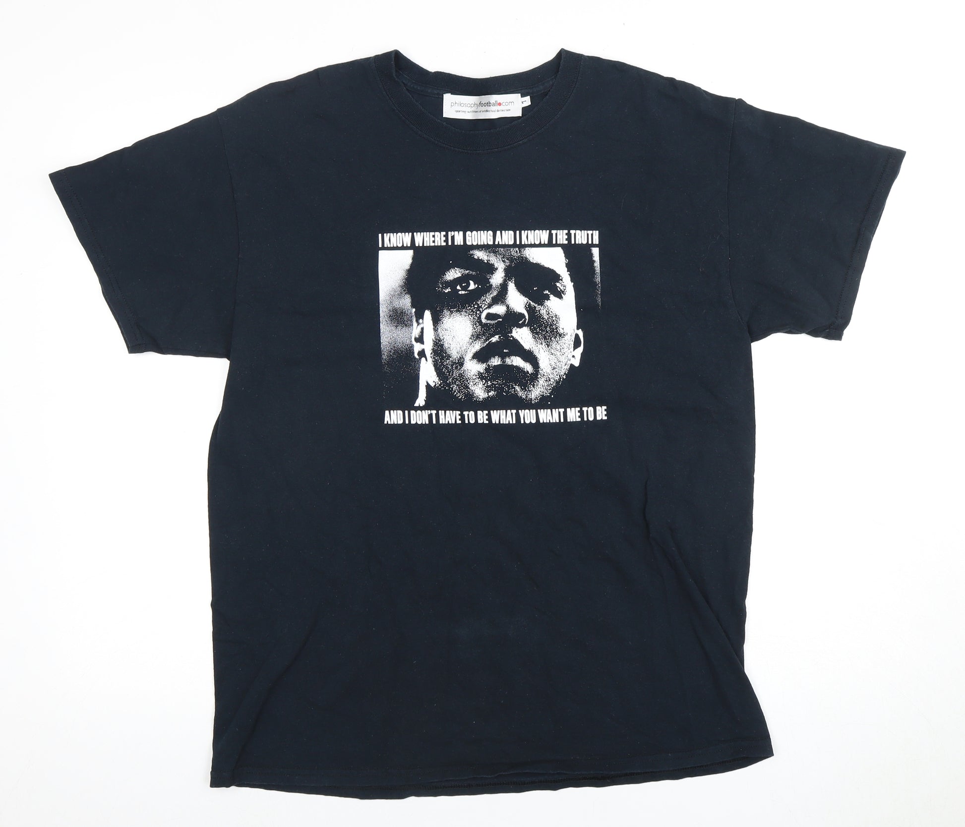Mens Philosophy Football T-Shirt, Black, Size L, Graphic Tee