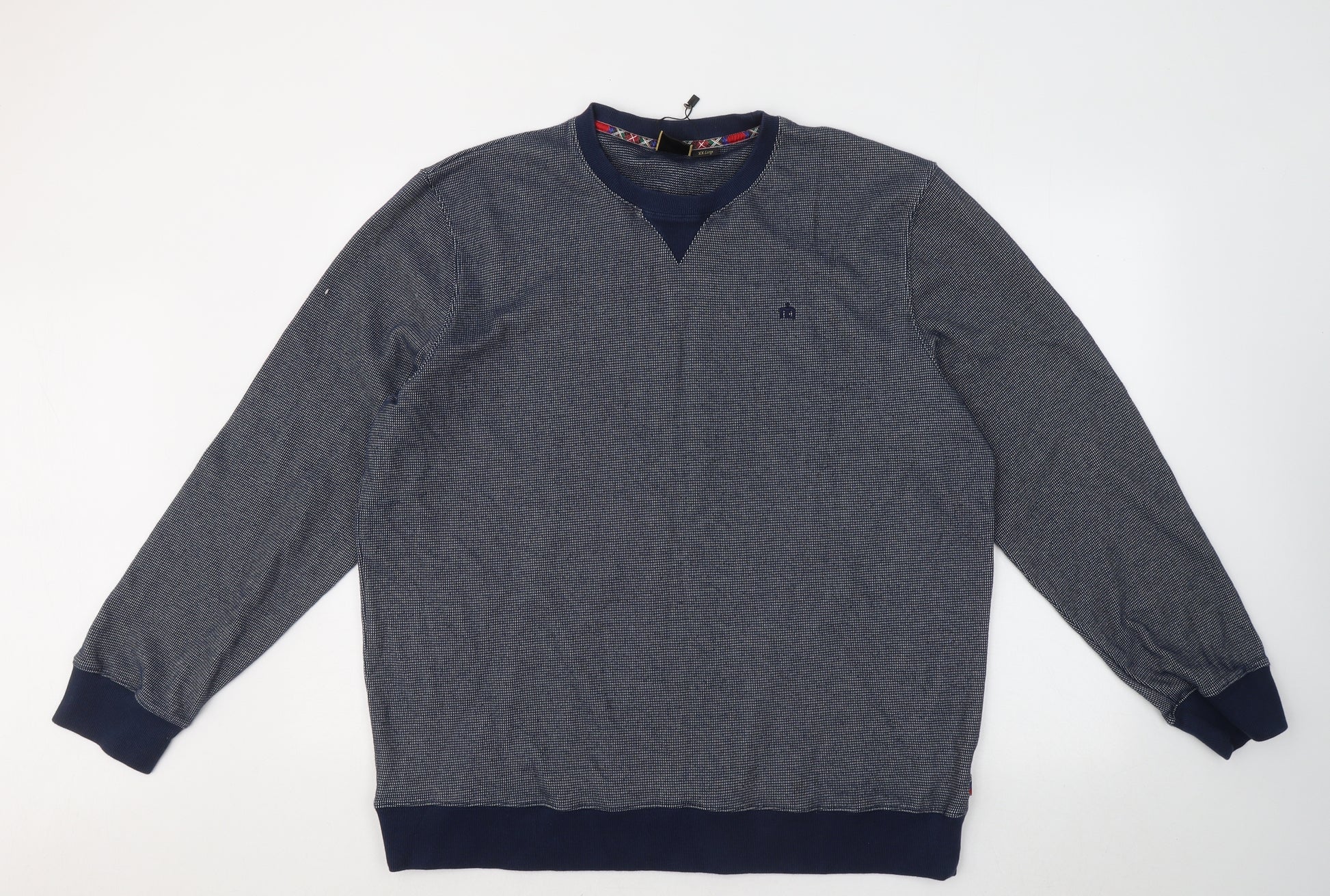 Mens Blue Round Neck Cotton Pullover Jumper Size 2XL