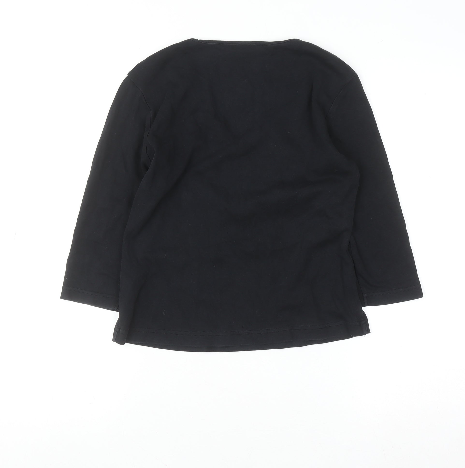Womens Black V-Neck Sequin Floral Cotton Top M 3/4 Sleeve