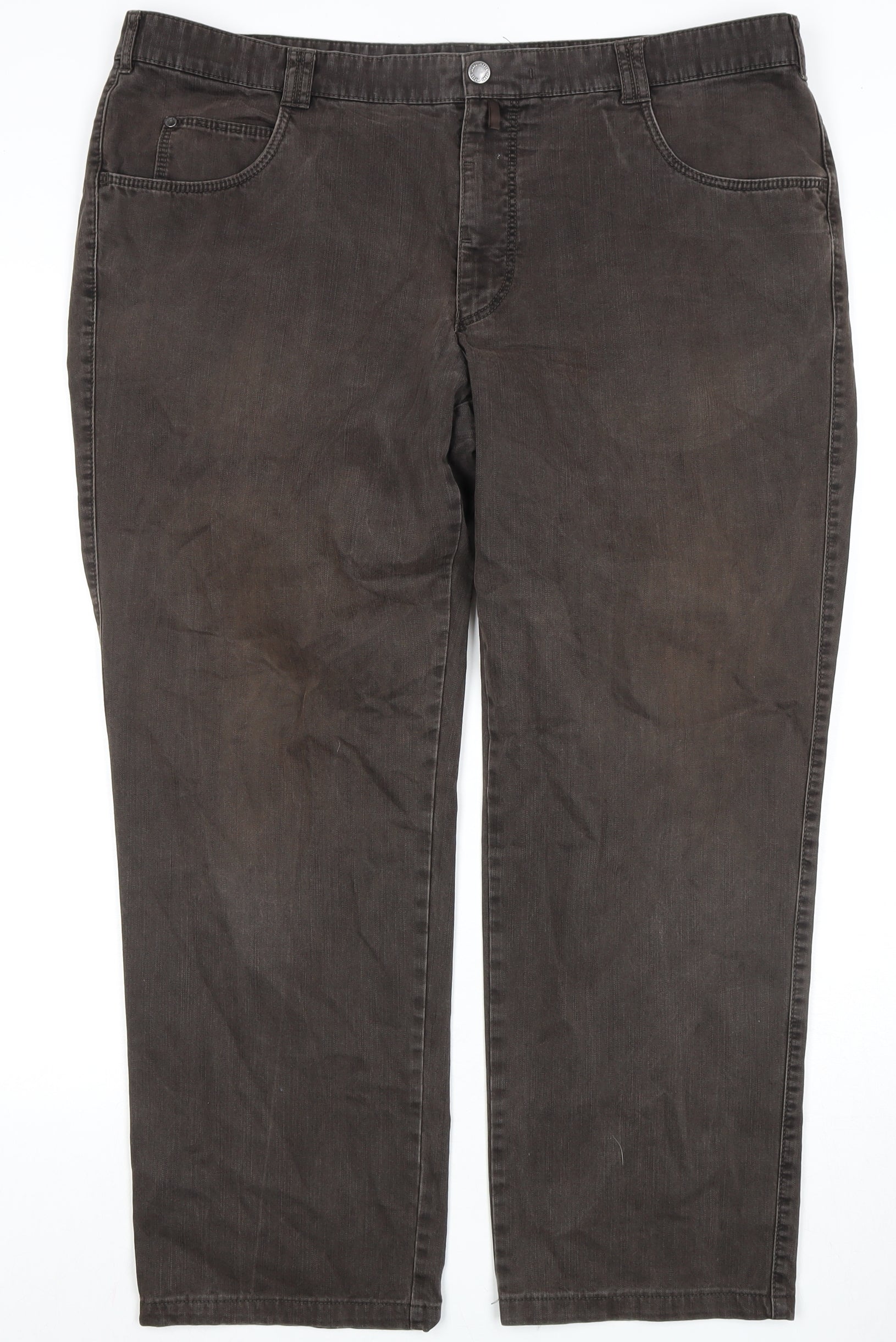 Discover comfort and style with these Meyer men's jeans in a versatile brown shade, perfect for any casual or semi-formal occasion. The straight-leg fit offers a classic silhouette, making it suitable for all body types. Crafted from a durable and comfortable blend of 97% cotton, 2% polyester, and 1% elastane, these jeans provide both flexibility and breathability for a comfortable wear all day long. Featuring a mid-rise fit, these jeans offer a relaxed, yet secure fit around the waist, ideal for pairing with a tucked-in shirt or a casual tee. The dark wash accentuates the rich brown colour, giving it a sophisticated look that is easy to match with various tops and footwear. Equipped with a button and zip closure, these jeans ensure ease of wear, complemented by belt loops to accommodate your favourite accessory. A reliable 5-pocket design, including functional pockets for everyday essentials, enhances the practicality of these jeans. While in good condition, these jeans exhibit slight wear and minor fading, adding a touch of character to their appearance. Machine washable, they're easy to care for, ensuring long-lasting use. Elevate your wardrobe with these Meyer jeans, ideal for a stroll through the city or a weekend outing, offering a perfect blend of style and comfort.