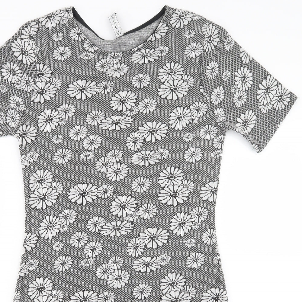 Womens Black Floral Basic T-Shirt Size 12 - Long