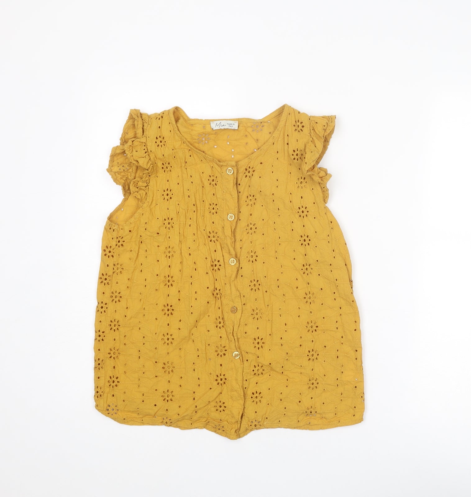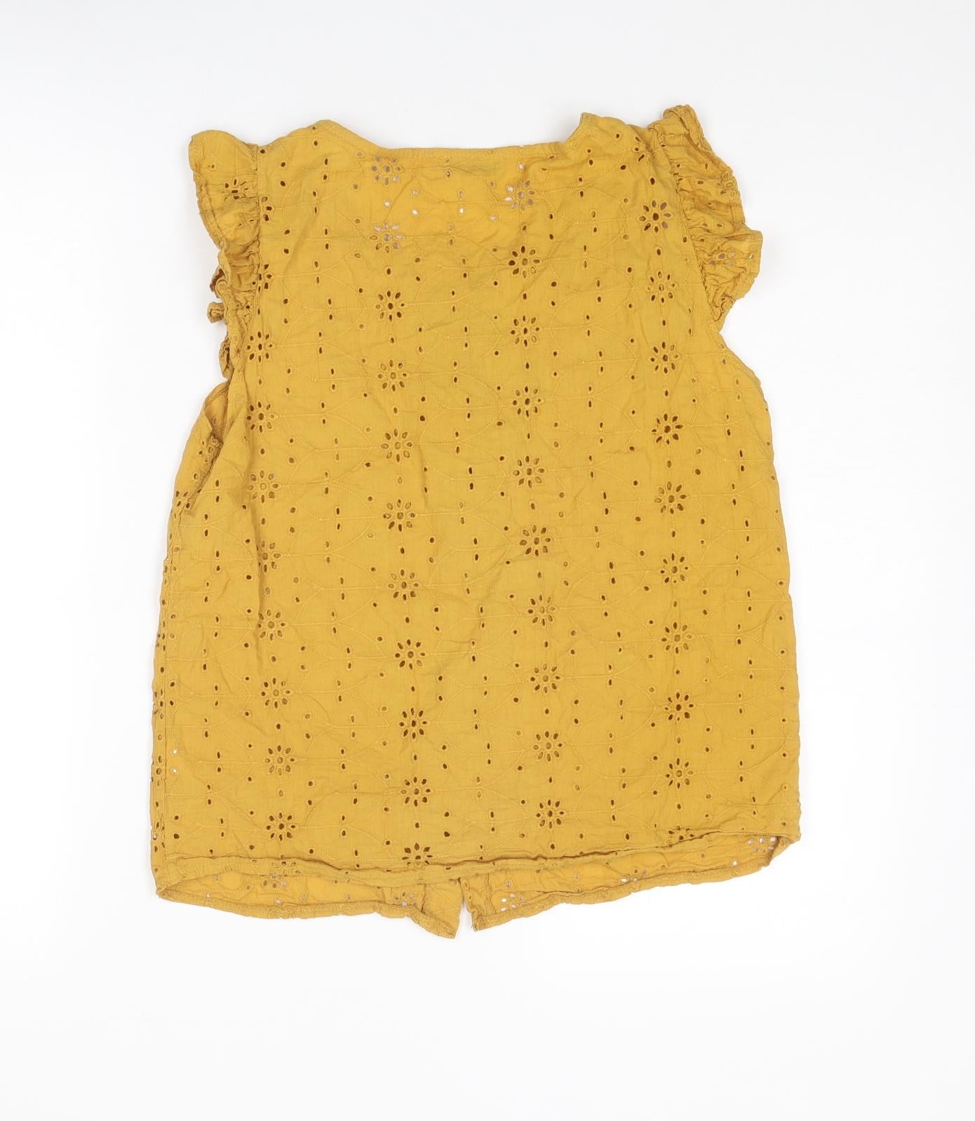 Womens Yellow Cotton Basic Button-Up Size S Boat Neck