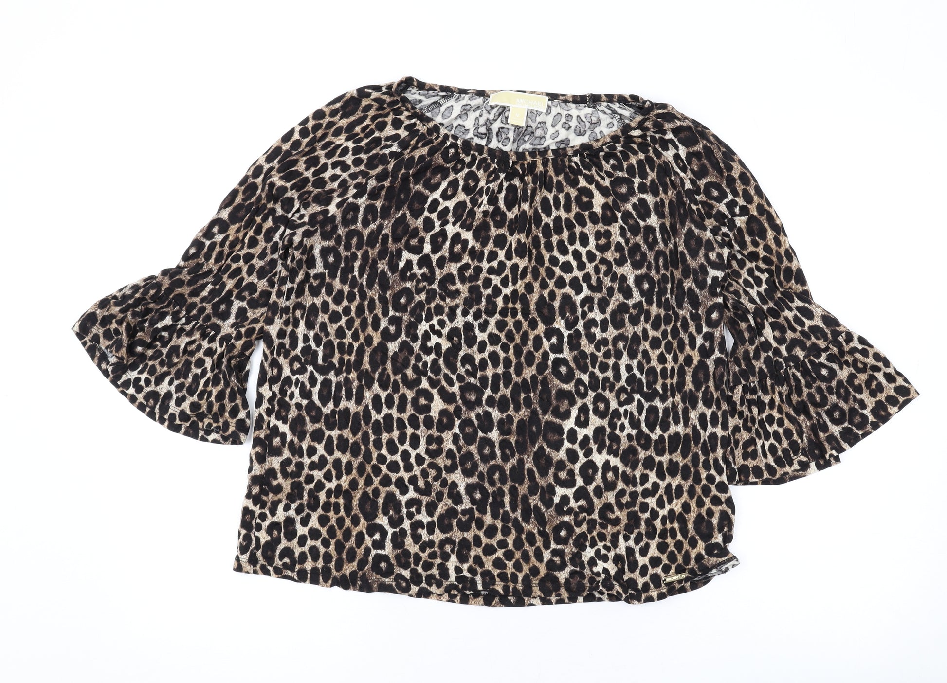 Womens Brown Animal Print Cotton Basic Blouse Size M Round Neck