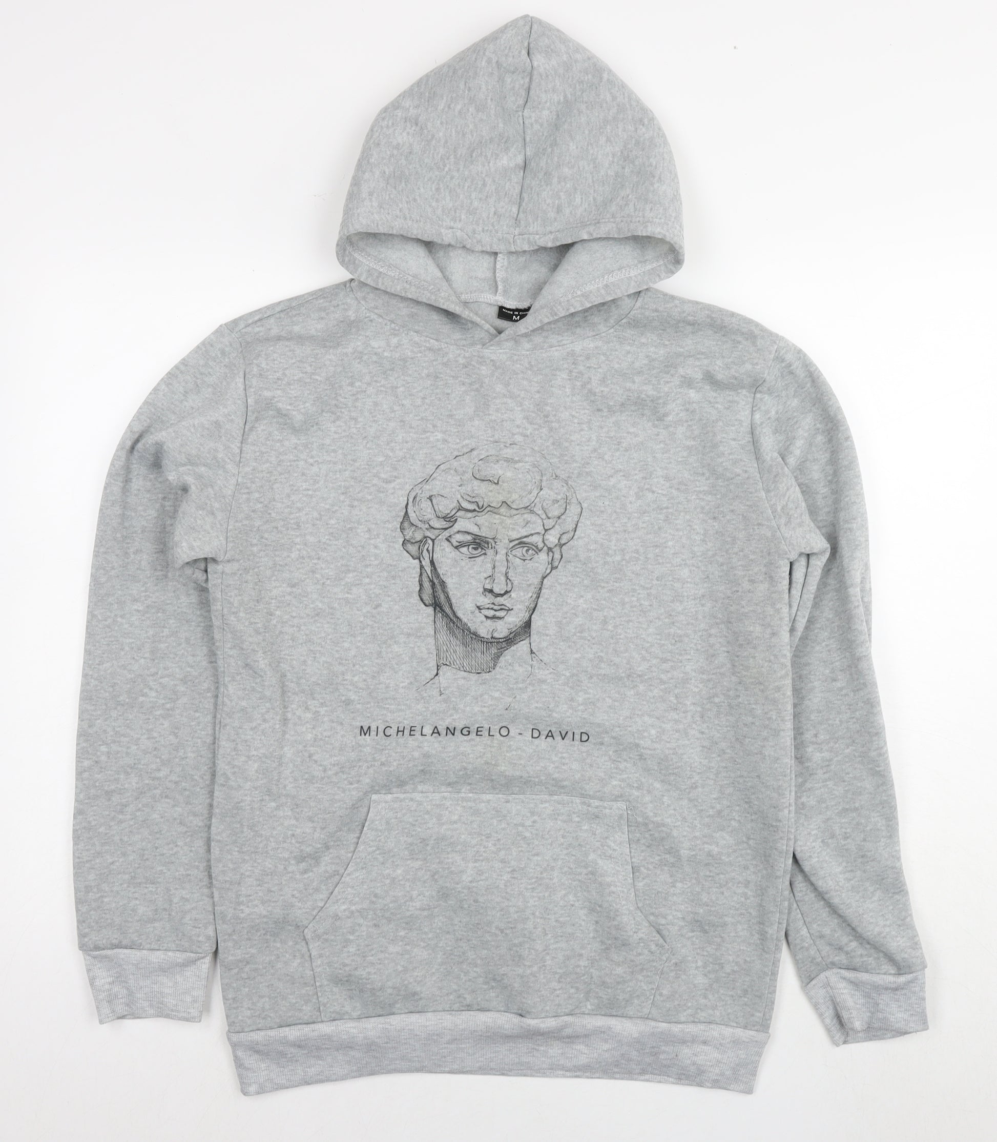 Mens Grey Polyester Pullover Hoodie Size S - Logo
