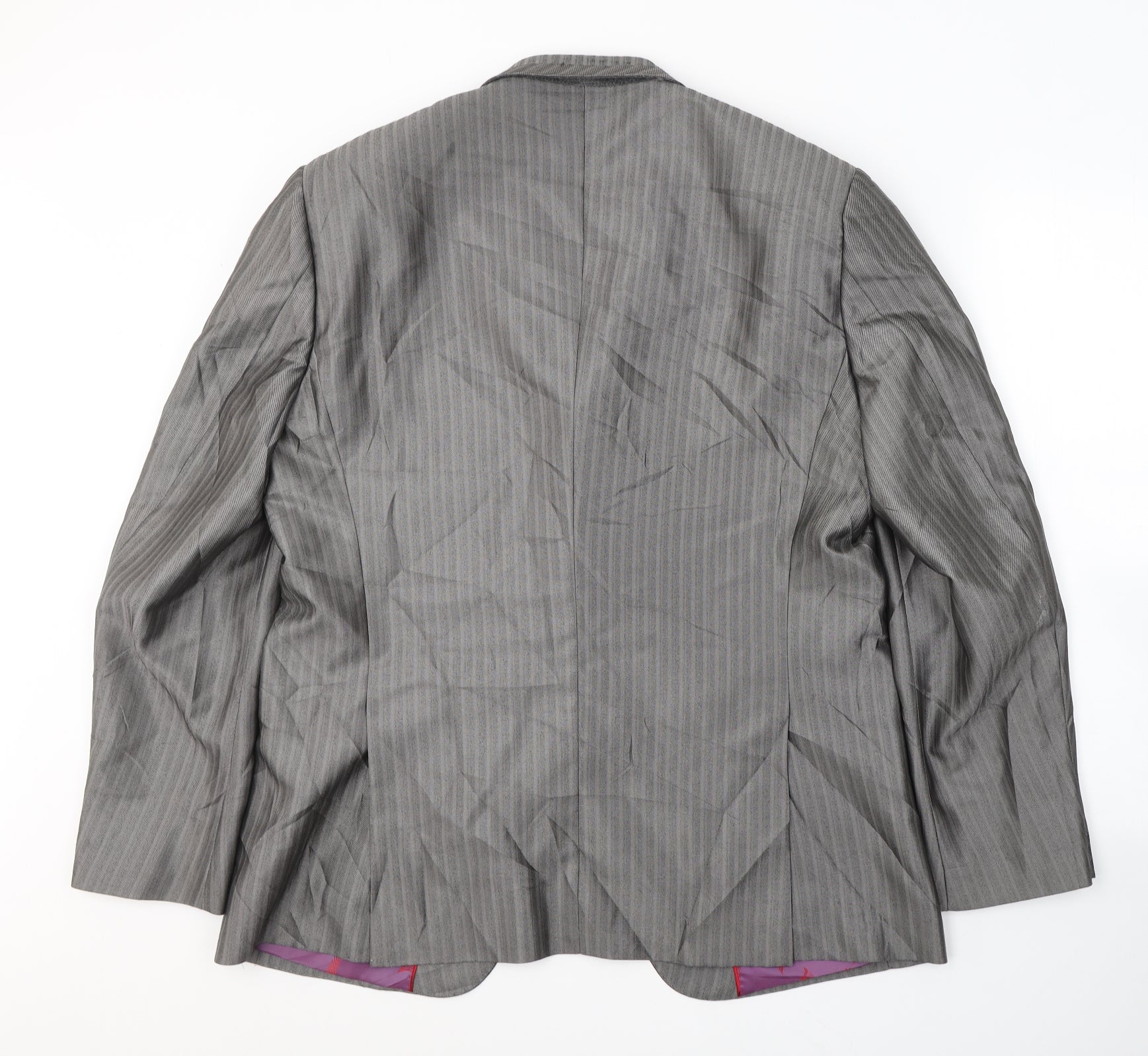 Mens Grey Striped Polyester Jacket Suit Jacket Size 44
