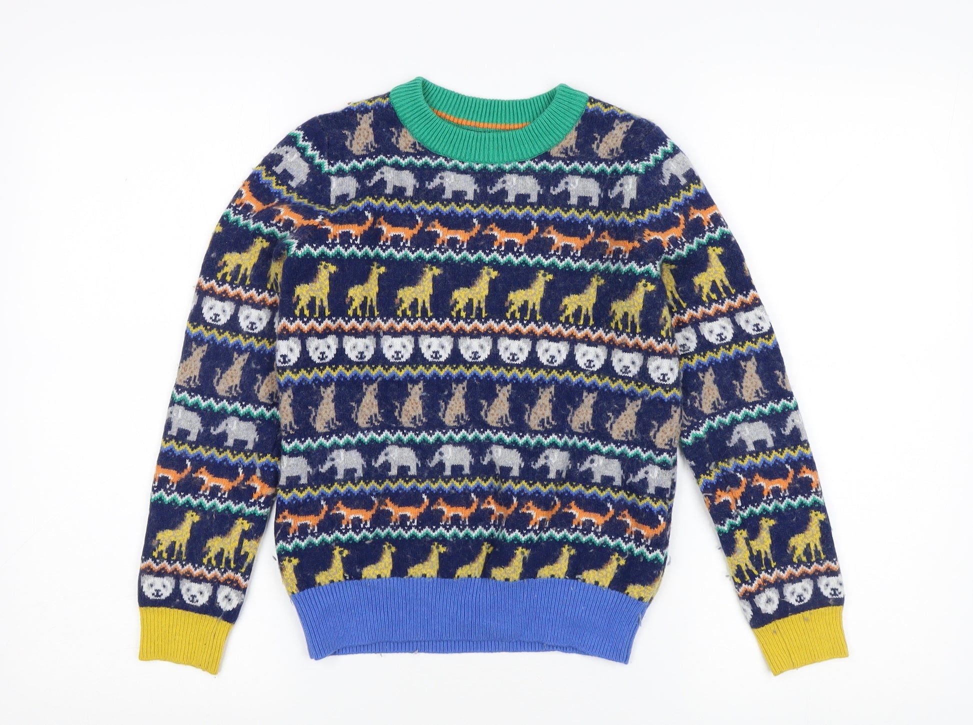 Add a playful touch to your child's wardrobe with this delightful Mini Boden Boys' Animal Print Pullover Jumper. Crafted to perfection, this multicoloured jumper is sure to become a favourite with its eye-catching animal motifs that adorn the entire piece. Designed for boys in the 11-12 years age group, it perfectly combines comfort and style. The jumper is crafted from a blend of polyamide, cotton, and wool, offering a cosy and warm wear, ideal for the autumn and winter seasons. The inclusion of alpaca and viscose provides added warmth and softness to this regular-fit garment. Featuring a classic crew neckline and long sleeves, the jumper ensures a snug and comfortable fit, making it perfect for casual occasions or a day school. The vibrant multicoloured palette, combined with an amusing animal theme, makes this pullover a fun choice for your young fashionista. Its easy-care fabric type ensures that maintenance is hassle-free, remaining machine washable for your convenience. Whether layered over a shirt or worn on its own, it is tailored to provide a regular fit, promising both style and comfort. The pullover closure ensures ease of wear, while the detailed graphic print adds a dash of cuteness and charm. A fantastic gift option, this jumper would make any boy's winter wardrobe more fun. Grab this item today at a great value, promising enduring style and endless play.