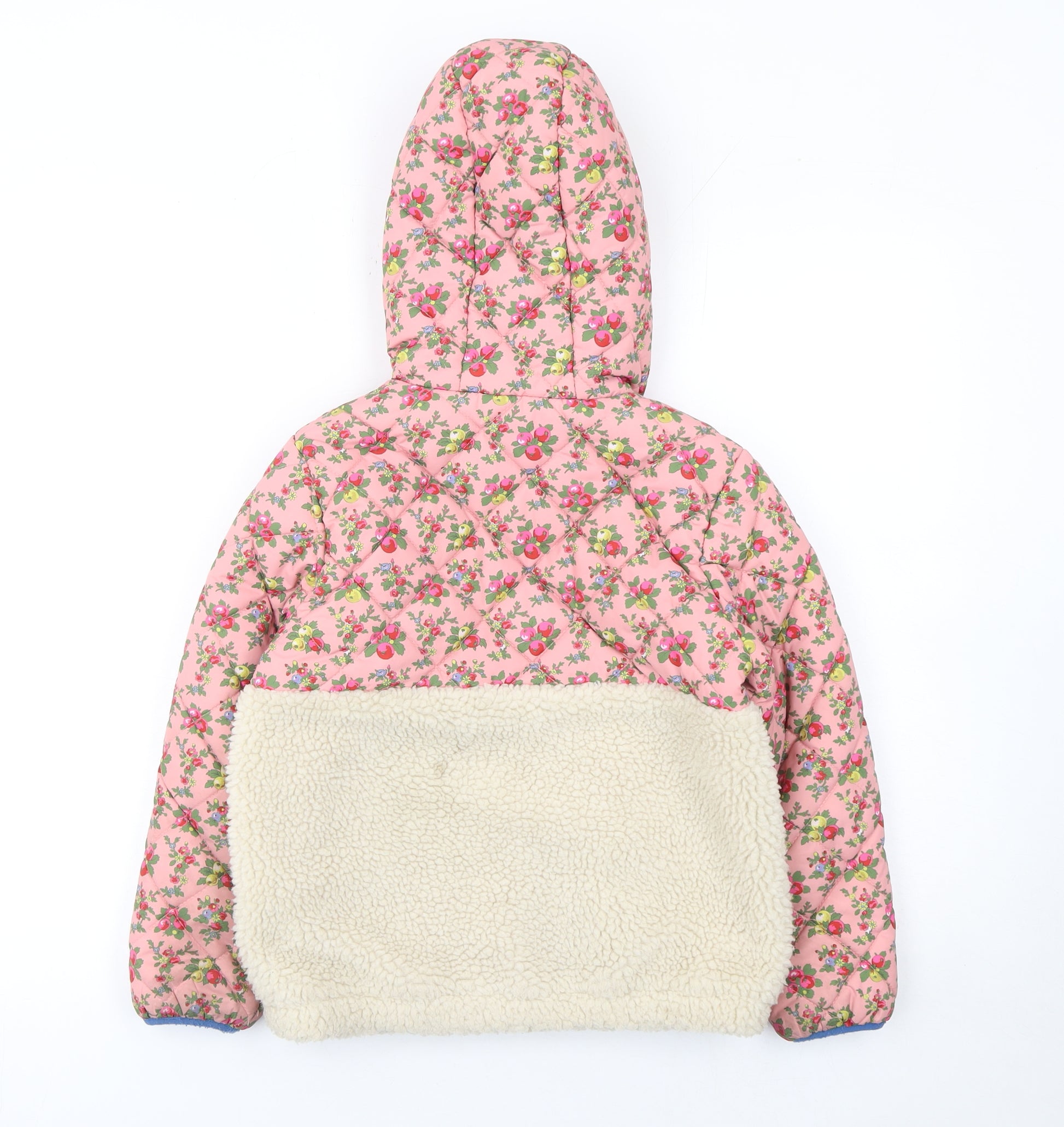 Mini Girls Pink Floral Hooded Puffer Jacket 7-8 Years Quilted Sherpa