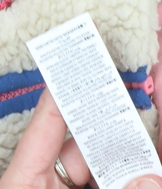 Add a touch of whimsical charm to your child's wardrobe with this delightful Mini Boden girls’ puffer jacket in a pretty pink floral design. Designed for ages 7–8 years, this jacket combines style, comfort and practicality perfectly for cooler autumn and winter days. The jacket’s outer shell is crafted from 100% polyester with a quilted floral print, offering warmth and durability for everyday wear. It features a super-soft sherpa fleece panel in cream across the lower half for extra cosiness and textured appeal, complemented by pastel blue zip-up pockets with fun, contrasting zipper pulls that add a playful touch. The hooded design provides protection from chilly winds, while the full zip front ensures easy fastening and layering convenience. With a fully lined interior, this jacket delivers both softness and insulation, keeping your little one warm during playtime or school outings. Designed by Mini Boden, it reflects the brand’s signature British quality and eye-catching prints that children and parents both love. The regular fit and short length ensure comfortable movement without bulk, making it a great choice for active adventures. Perfect for casual occasions, outdoor walks or family outings, this practical piece is machine washable for easy care. Though pre-loved, it remains in good overall condition with only light signs of wear visible on the pocket and sherpa trimming, giving it plenty of life left for its next wearer. Offering both practicality and charm, this jacket is ideal for layering over winter outfits and guaranteed to brighten up even the frostiest days. Make it part of your child’s collection – a cosy, colourful essential that blends comfort and classic Mini Boden personality effortlessly.