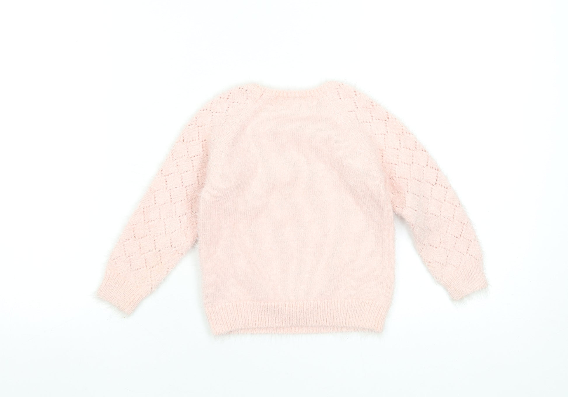 Girls Pink Pullover Jumper 3 Years Soft Knit Diamond Sleeve